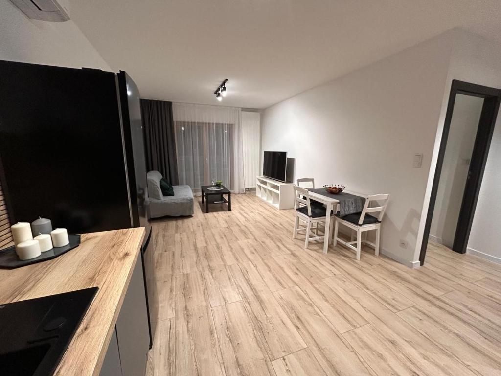 Moderno apartamento de 2 habitaciones. El apartamento consta de: cocina totalmente equipada, 2 dormitorios (uno con una cama doble grande, el segundo con una cama y un escritorio estándar), un armario empotrado, una sala de estar con un cómodo sofá cama para dos personas, un baño y un bonito balcón grande. La superficie habitable total es de 57 m2. El apartamento se encuentra en el segundo piso con estacionamiento privado asignado en el garaje subterráneo.