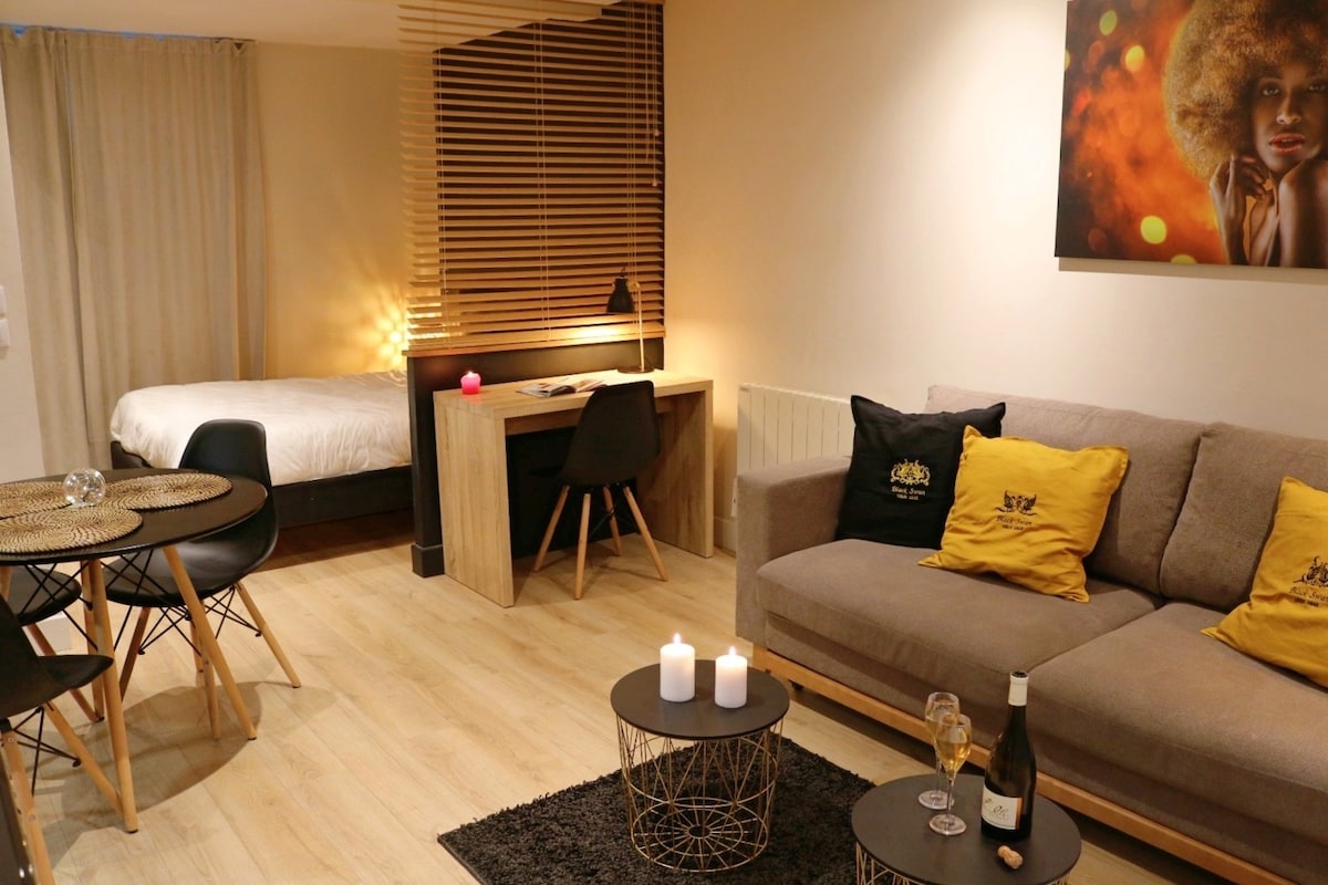 Se sentirá bien en mi apartamento en el centro de la ciudad. Su proximidad a todo le dará muchas posibilidades de actividades durante su estadía. Este alojamiento es ideal para parejas, viajan con amigos, familias o trabajadores en tránsito. Es grande con espacios bien separados para estar tranquilo durante el dodo. Podrá disfrutar de todas las comodidades de un hotel de lujo. Si aún no es suficiente, no estoy muy lejos. Estacionamiento gratuito a menos de 10 minutos.