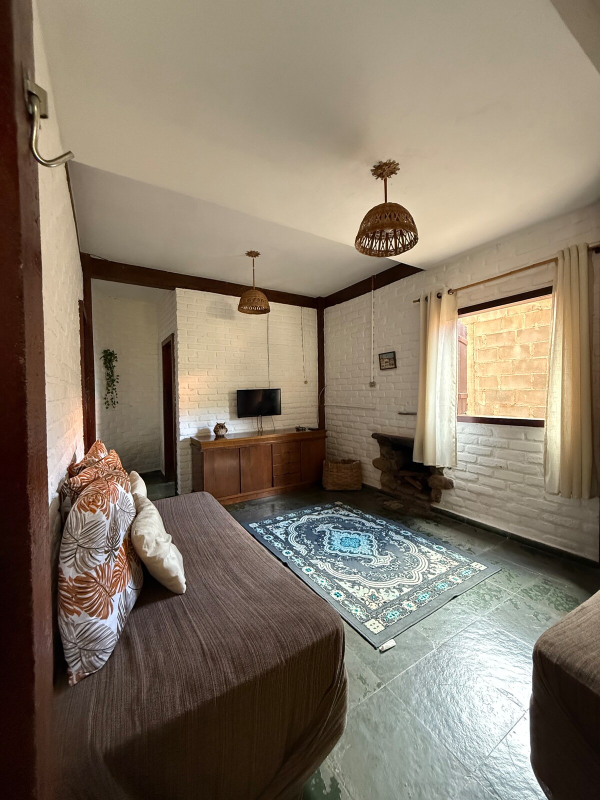 Situado a 600 metros del centro de la localidad de Conceição do Ibitipoca, el Flat Sol Nascente es el espacio perfecto para parejas que buscan tranquilidad y descanso en la sierra. El apartamento cuenta con un dormitorio con cama doble, sala/cocina integrada (equipada con minibar, cocina, air fryer, mesa, bancos de madera y utensilios básicos), altillo con hamaca y sofá cama y baño con bañera de hidromasaje (ofurô), ideal para relajarse después de un día de paseo por el parque.
