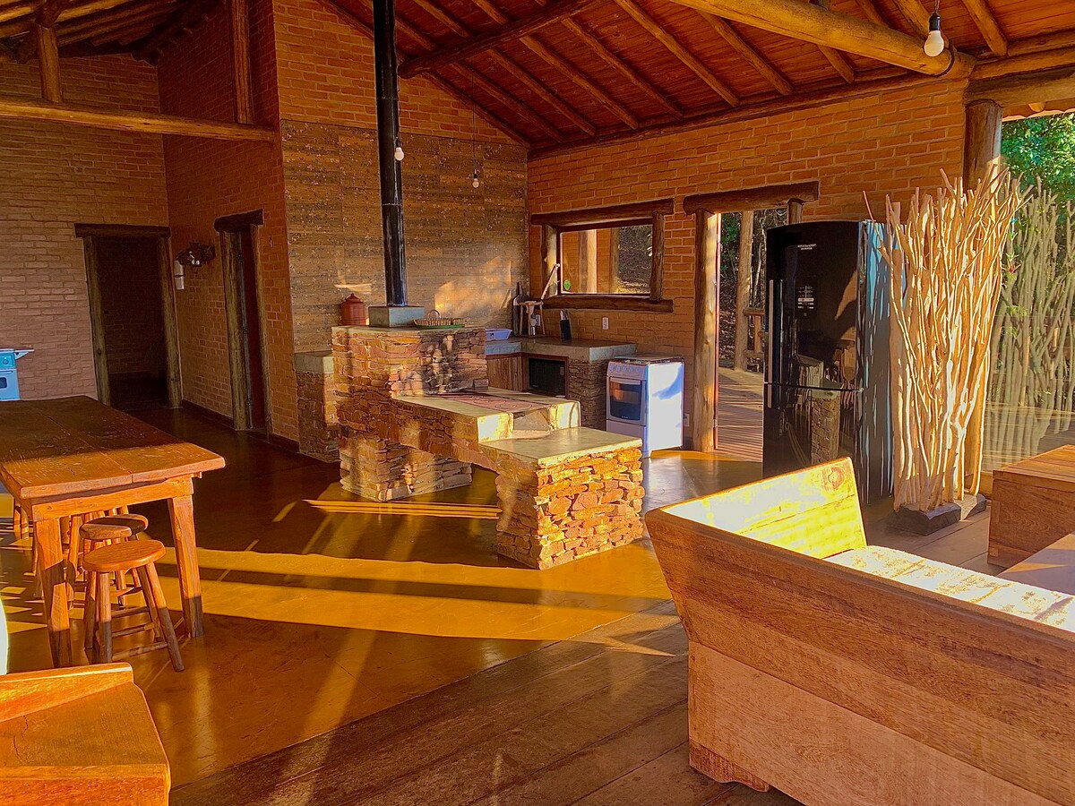 Nuestro chalet en Ibitipoca es muy acogedor y confortable, tiene 2 dormitorios con 6 camas, capacidad para 8 personas, tiene 2 baños, 2 balcones, comedor, sala de estar, sala de juegos, cocina con estufa de leña y parrilla, ¡una terraza con una vista maravillosa para la puesta de sol! ¡También tiene una chimenea muy buena para calentarse del frío! Se encuentra en el campamento, en un terreno de mil metros cuadrados, y tiene un hermoso jardín en la fachada, con varios árboles nativos y flores diversas, ¡donde hay una ducha muy agradable!