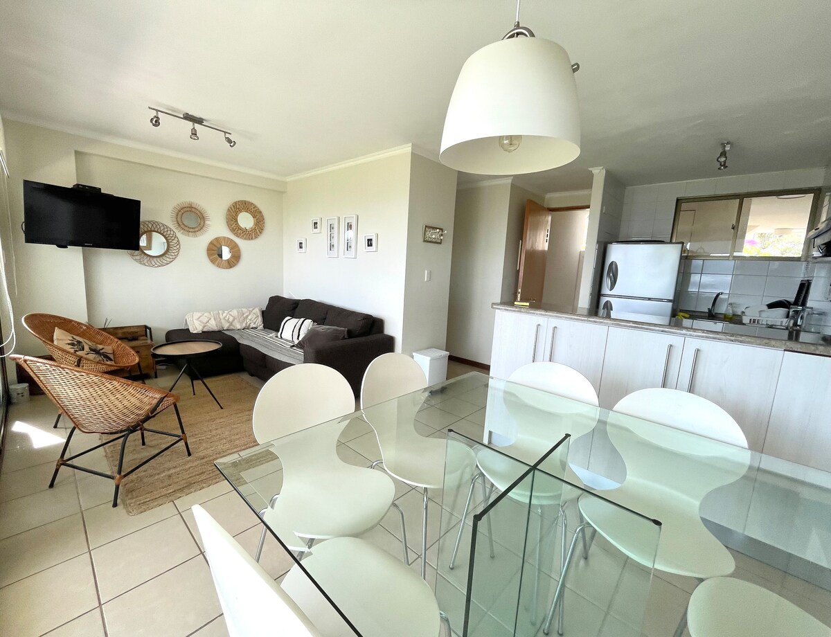 Vive tus vacaciones en este hermoso departamento frente al mar, con una vista preciosa, disfrutando de la tranquilidad de estar en una playa exclusiva, llena de naturaleza, donde podrás disfrutar junto a tu familia, tendrás piscina temperada, piscinas al exterior con borde infinito, una hermosa duna, podrás hacer buceo, stand up Paddle, kayak, voleibol entre otros deportes.