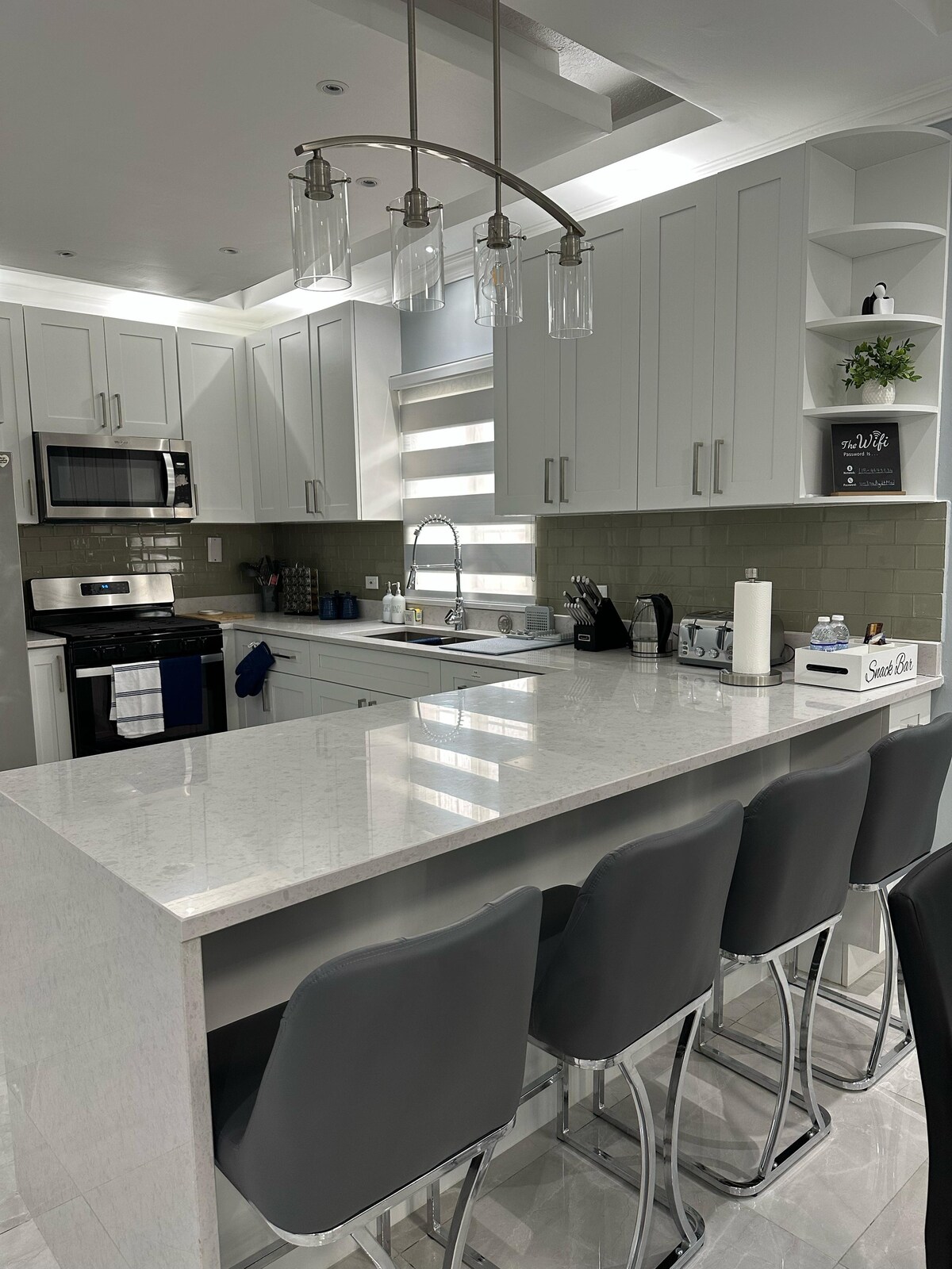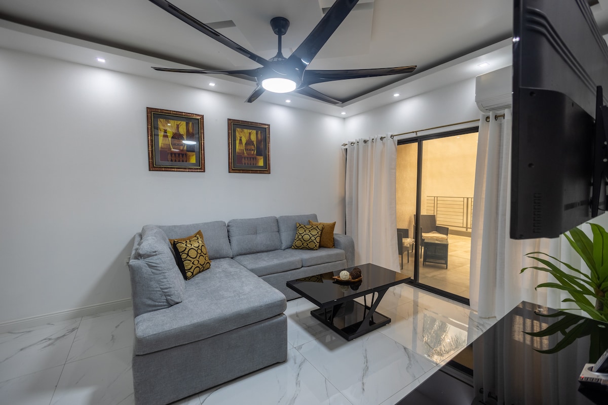 Siéntete como en casa en nuestra propiedad de 3 dormitorios y 3,5 baños en una comunidad cerrada de Cherry Garden, a pocos minutos de Hi-Lo y Fontana. El espacio tiene capacidad para seis personas y ofrece una piscina en la azotea, vistas panorámicas y un diseño moderno. Los huéspedes disfrutan de conexión Wi-Fi de alta velocidad, aire acondicionado, cocina equipada, área de trabajo, lavandería, servicios públicos de respaldo, estacionamiento y seguridad las 24 horas. Perfecto para una estancia cómoda y sin preocupaciones en Kingston, ¡reserva ahora!