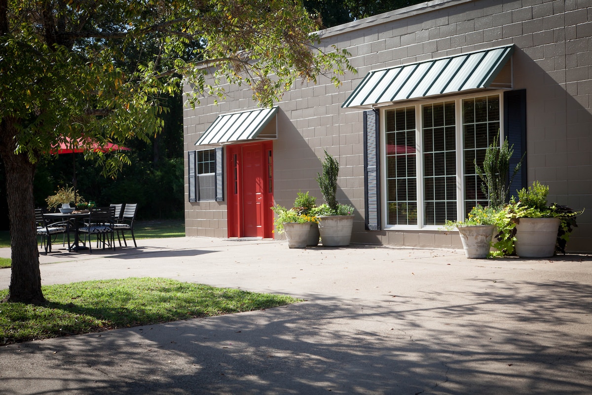 Pintoresca casa de campo enclavada entre tres acres de imponentes árboles. Cuenta con una cocina grande y recientemente renovada, un dormitorio espacioso y mucho espacio para vivir al aire libre, incluido un jacuzzi y un pozo de fuego. Esta cabaña en el bosque ofrece la privacidad y la belleza del este de Texas que buscas, pero está a pocos minutos de numerosos restaurantes y atracciones con fácil acceso a la Interestatal 20 y la Toll 49. Retírate a la gran terraza y contempla las estrellas, o coge una manta y disfruta de s'mores junto al fuego.