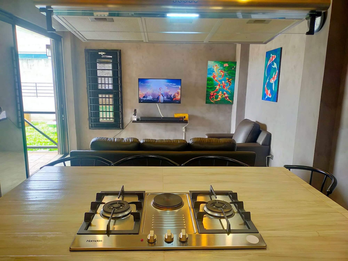 Una villa privada industrial moderna donde el lujo se encuentra con una escapada serena. Ubicado en Tagaytay-Calamba Road (sí, puedes disfrutar del clima de Tagaytay sin pasar por el tráfico de Tagaytay), se puede acceder al lugar a través de varios puntos de salida desde Metro Manila - Mamplasan/CALAX, Sta. Rosa, Greenfield/Eton o Silangan. A solo 10 minutos. Nuvali y a 4 minutos de la antigua mansión gemela Marcos, puedes disfrutar de un soplo de aire fresco y una relajante vista pintoresca del monte Makiling, Laguna de Bay, la isla Talim y MMla