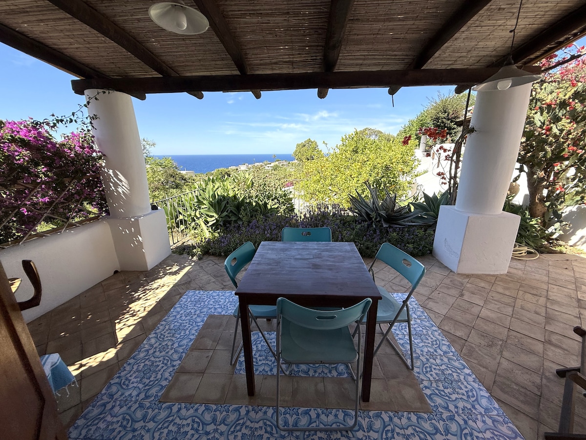 El apartamento forma parte de la casa donde vive la propietaria única y consta de un gran dormitorio con una cama doble divisible, aire acondicionado, un vestidor, un baño completo con ducha, una cocina equipada con todo lo necesario, sofá y televisión. Además, dispone de una gran terraza con vistas al mar, con una parte cubierta para comer y relajarse y unas maravillosas vistas de Panarea y Stromboli. Una escalera privada conduce a la preciosa cala de abajo, con un mar espectacular.
