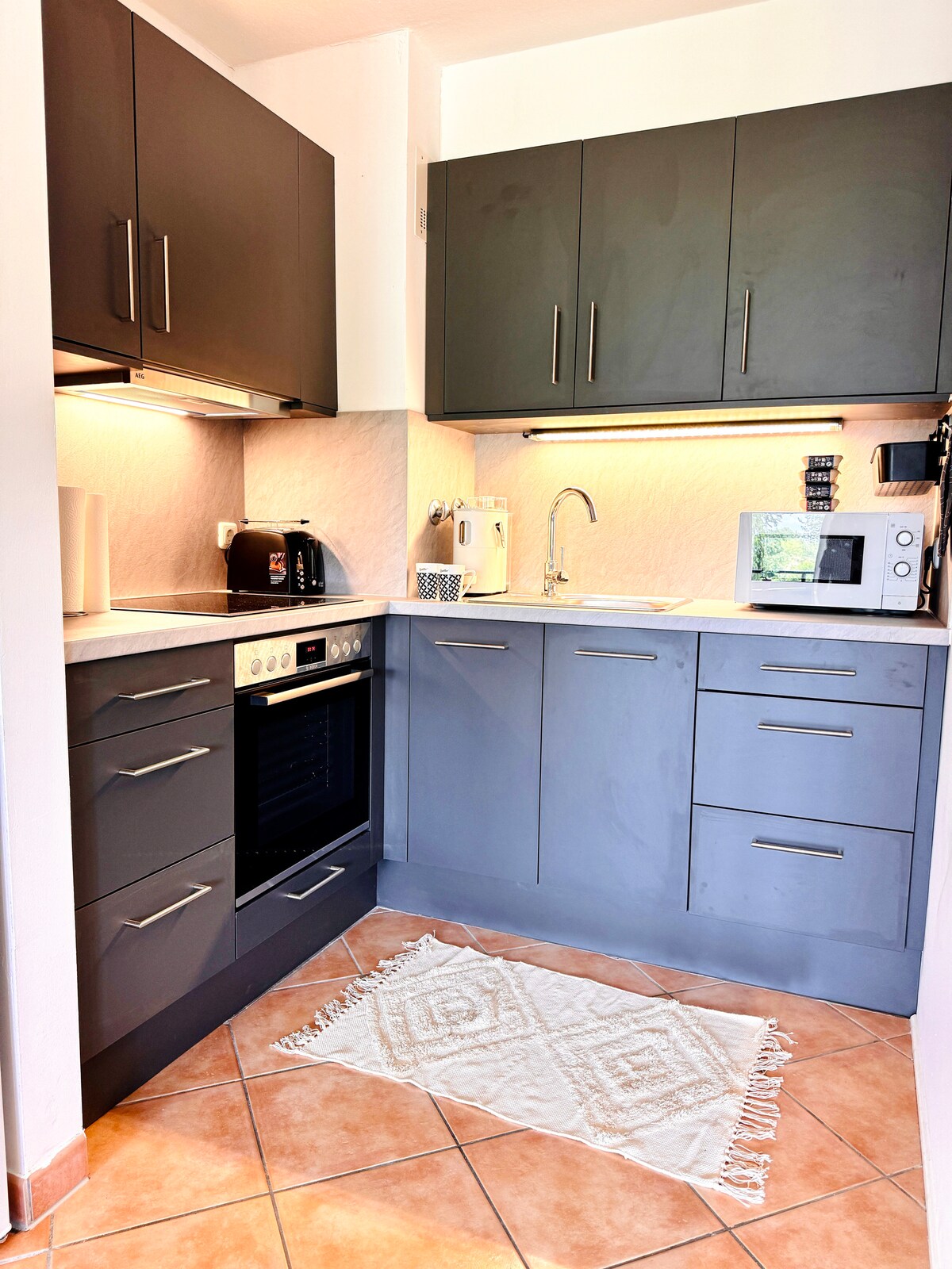 Moderno, 90 metros cuadrados, apartamento totalmente equipado para bienestar, trabajo y viaje con jardín, bañera de hidromasaje de lujo (todo el año), ducha al aire libre, salón de jardín, piscina (de temporada) y mucho más. 3 dormitorios, cada uno con una cama tamaño king, 140x200. Habitación con lavabo. Totalmente equipado, cocina nueva, baño pequeño con ducha. Gran invernadero. Cada dormitorio con escritorio y TV, WLAN. Amplia terraza con tumbonas y barbacoa. unidad de negocios Tienes el alojamiento, incluida la zona al aire libre, solo para ti.