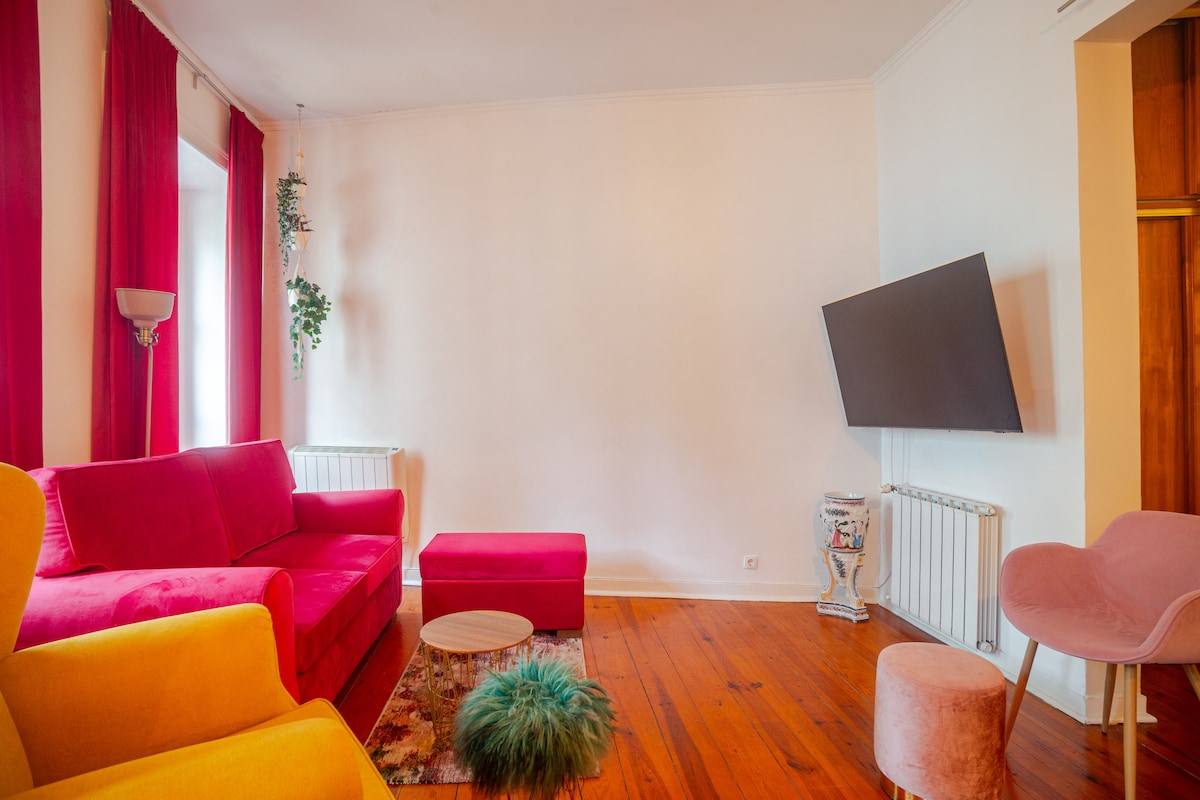 ¡Recientemente remodelado en junio de 2023! Este cómodo y cómodo departamento de un dormitorio lleno de arte está ubicado en la mejor zona para visitar Lisboa. El vecindario es animado con restaurantes y bares. No nos reserves si eres demasiado sensible al ruido. Con demasiada frecuencia, a los huéspedes les encanta nuestro alojamiento, pero nos dan 4* evaluaciones debido al ruido, ya que no es justo para nosotros. Al lado del Time Out Market y a pocos minutos del río, Pink Street y Pensão Amor, Praça do Comércio y Baixa Ciado.