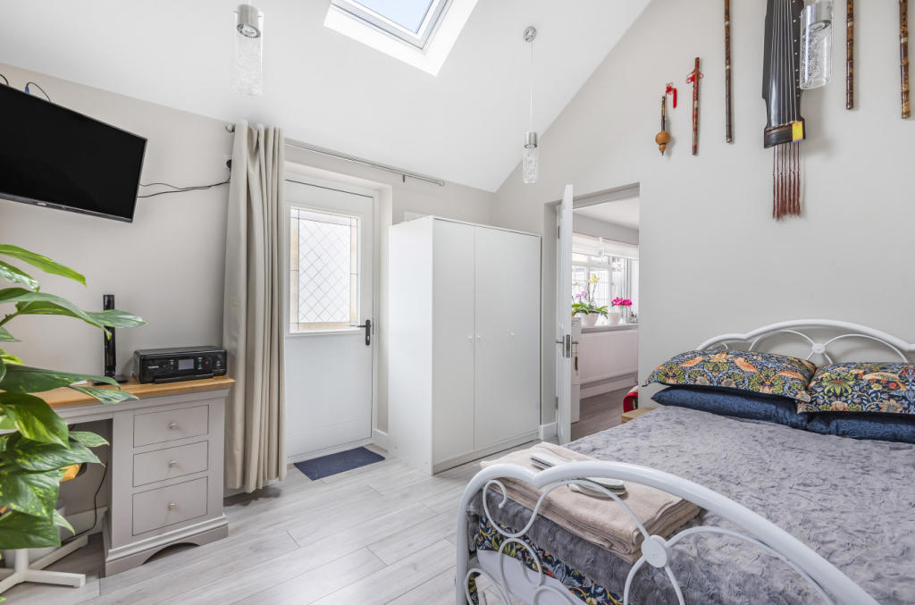 A self-contained newly build 20 m2 studio with separate entrance and parking. The studio is comprised of an en-suite bathroom, a super-king bed, a tall boy and a work desk. A kitchenette just next to the room with fridge freezer, microwave, kettle, toaster, coffee machine, washing machine and a tumble dryer. “The kitchenette doesn’t have a stove or an oven.” The studio is brand new and built to high standards. The studio is a 15 minutes walk to Wokingham train station and town centre.