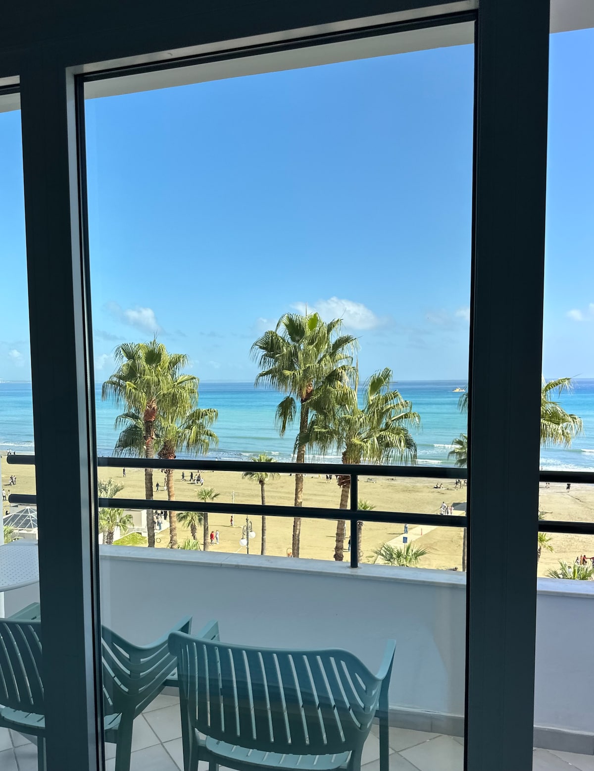 Apartamento de dos dormitorios con impresionantes vistas al mar y al puerto deportivo de Larnaca, a pocos pasos del paseo marítimo Finikoudes y de la playa Bandera Azul. Disfruta de unas vistas impresionantes y quédate en el corazón de la ciudad. Hay restaurantes y cafeterías a 5 minutos a pie. Internet rápido, TV por cable, balcón soleado con muebles de exterior, aparcamiento cubierto privado, atención incondicional del anfitrión, lo que significa la mejor relación calidad-precio. Durante la temporada de Navidad, un parque de atracciones funciona cerca, es posible que se escuche algo de ruido fuera de nuestro control.
