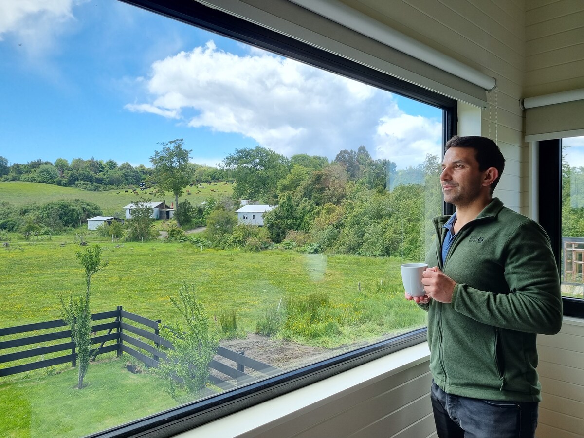 Hogar de descanso para familias con energía. Hito del viaje para descubridores de nuevos mundos. Cálido refugio para momentos de paz absoluta. Vistas panorámicas al lago y volcanes. A sólo 5 minutos del Teatro del Lago encontrarás conexión natural con una vida campestre en el sur de Chile. Sumérgete en nuestra tinaja* al aire libre y disfruta de un baño caliente rodeado de la serenidad de la naturaleza. Somos Angela & Francisco. Te esperamos en Ave Lodge. *Costo adicional Tinaja 45.000 CLP