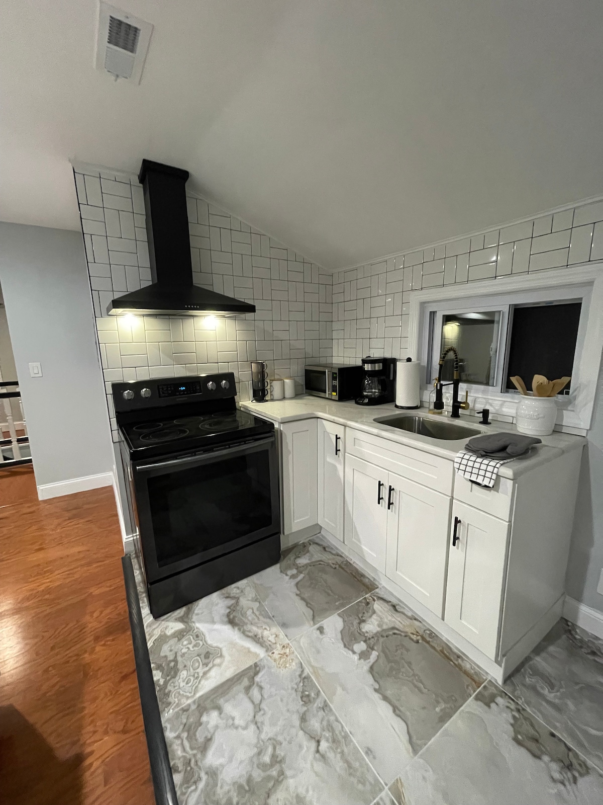 Relájate en este espacio tranquilo y elegante ubicado en el corazón de Montclair, Nueva Jersey, con muchos restaurantes excelentes. Situado entre dos parques, así como dos estaciones de tren que van a Nueva York. La cocina tiene una nevera de tamaño completo, estufa/horno, microondas, horno tostador, exprimidor ninja y hervidor de agua. Parque infantil. Estacionamiento en la entrada. Lugar tranquilo y seguro cerca de los aeropuertos de Newark y JFK. Prudential Center a 4,9 millas Estadio MetLife 7,8 millas Sueño americano a 8 millas Se permite fumar en el exterior de la propiedad.