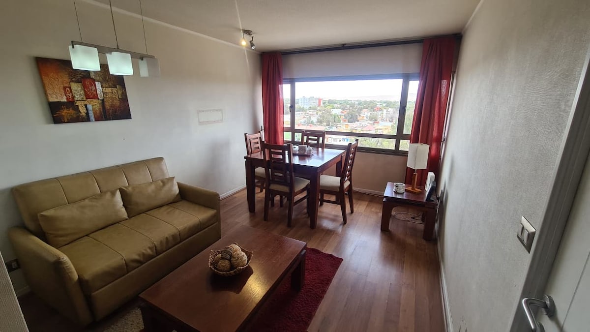 Disfruta de la sencillez de este alojamiento tranquilo y céntrico en la ciudad de Calama. Frente a él, un gran centro comercial con supermercados, farmacias, restaurantes, y otros. Renovado para entregar la comodidad y elementos que un huésped necesita. Estacionamiento privado incluído, spa, piscina, quincho, gimnasio y lavandería son los servicios que ofrece el edificio con reserva previa (cerrado los lunes por mantención en instalaciones, se debe pagar por el uso, no incluye detergente)