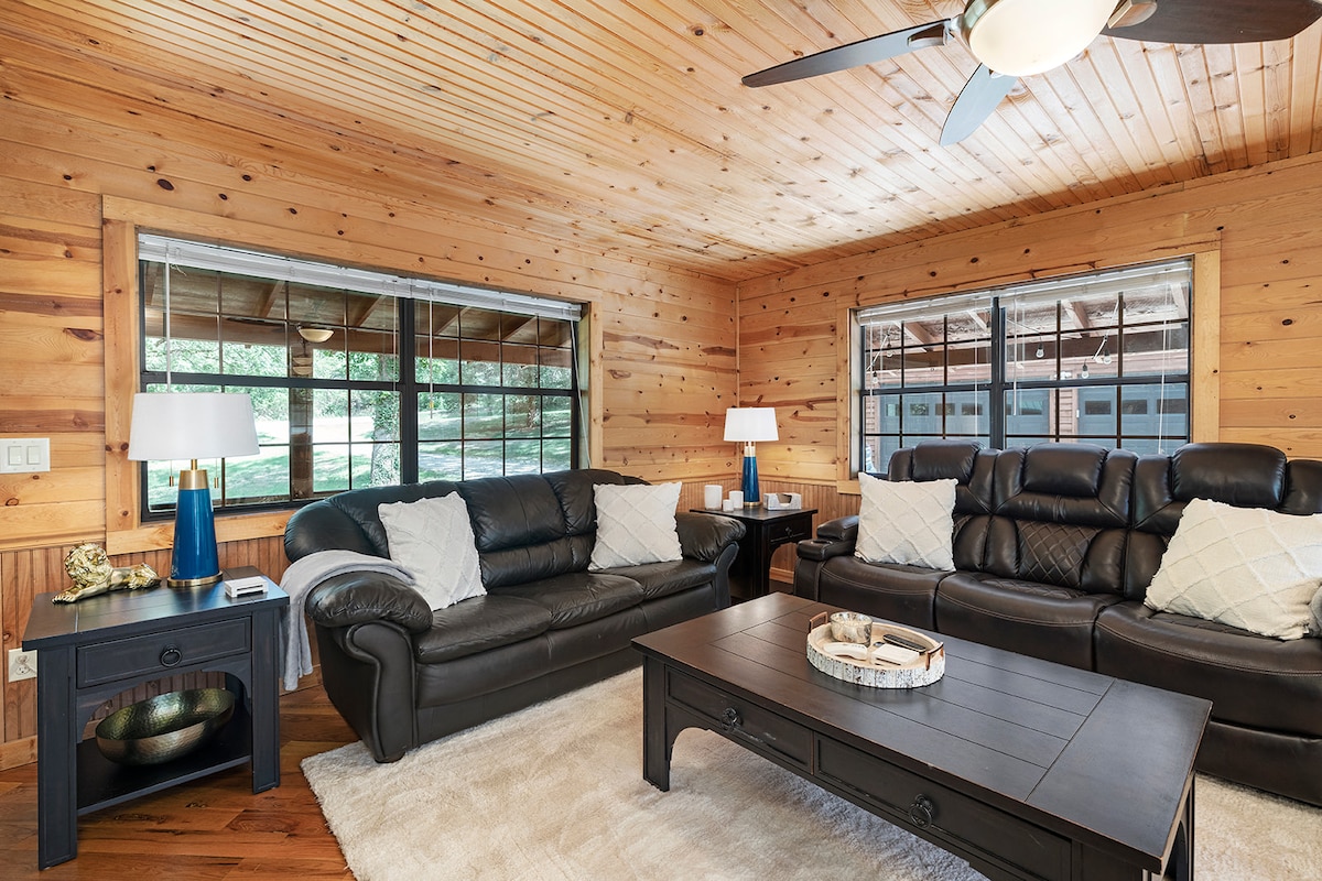 Esta encantadora casa está discretamente ubicada entre los campos y los bosques de los Ozarks. Aunque está a solo unos minutos de la autopista 65, la ubicación es una calle sin salida tranquila y con poco tráfico. Este alojamiento es lo suficientemente espacioso como para que las familias numerosas se instalen cómodamente. Los tonos cálidos y el ambiente rústico complementarán cualquier excursión a la zona. Sea cual sea la naturaleza de su viaje, ya sean invitados a una boda o turistas, veraneantes o viajeros de negocios, aquí todos encontrarán descanso y comodidad.
