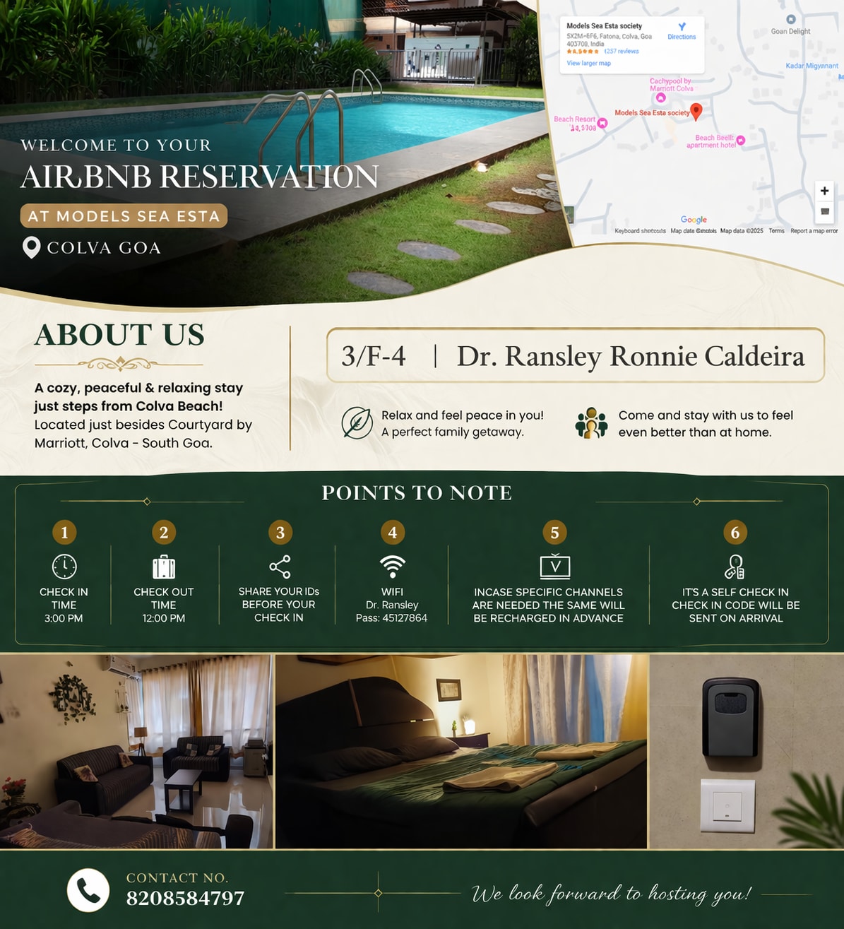 Escápate a la villa 3BHK en la serena South Goa, a solo 400 metros de la playa de Zalor. Perfecto para un máximo de 6 huéspedes, este espacioso alojamiento cuenta con 3 dormitorios tamaño king con baño, una cocina totalmente equipada y acceso a una piscina comunitaria. Experimenta la auténtica vida de Goa con comodidades modernas en un barrio tranquilo y seguro. Ideal para familias y grupos que buscan un refugio tranquilo. Nota: Ten en cuenta que las tarifas son fijas y no negociables. Los precios se comparten teniendo en cuenta la ocupación y la estacionalidad.