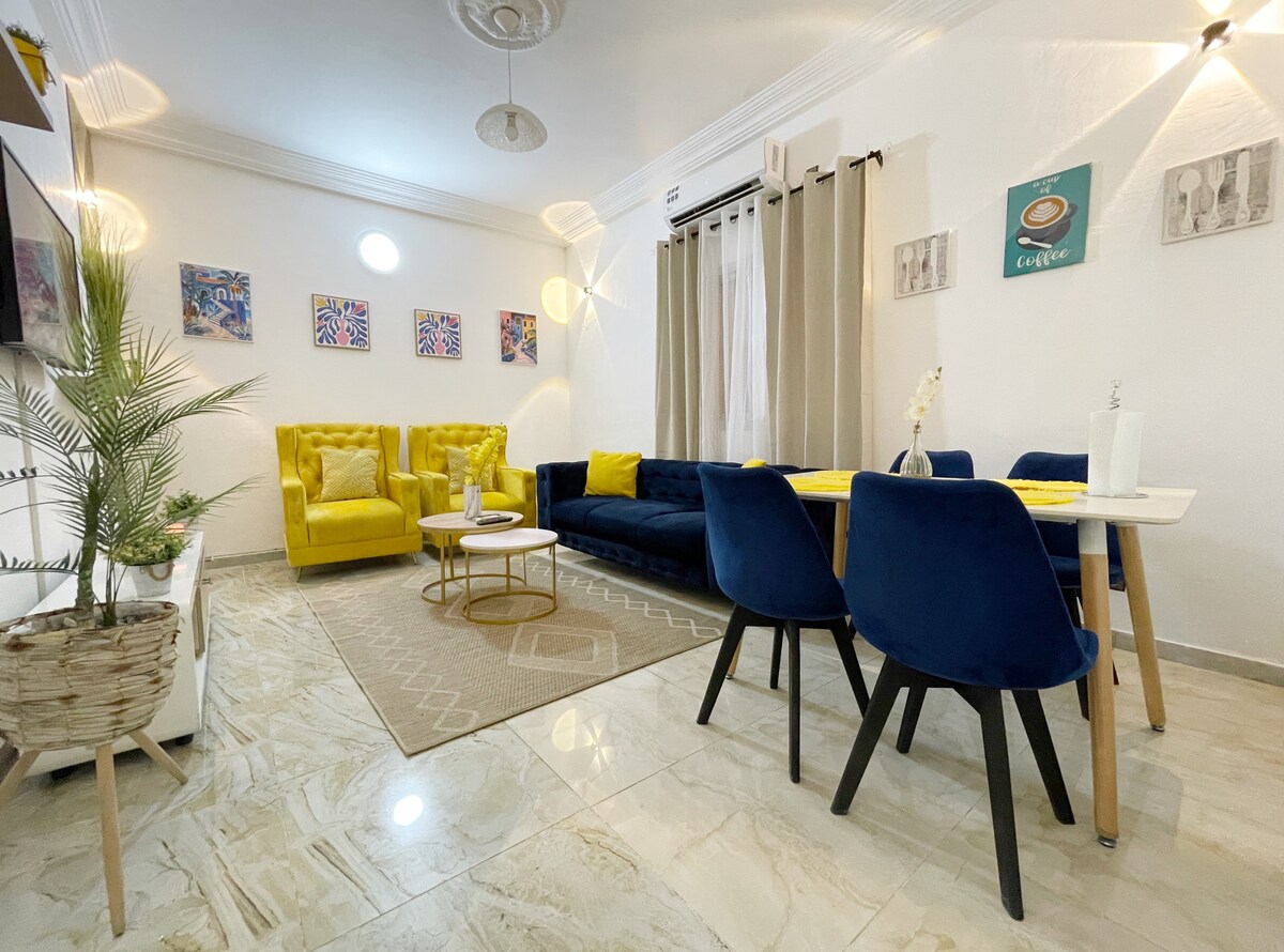 Bienvenido a nuestro moderno apartamento en Lomé. Disfruta de la comodidad y el estilo en este apartamento completamente amueblado ubicado en Amadahome, a 25 minutos del centro de Lomé, a 27 minutos del aeropuerto, en un vecindario tranquilo. Cámaras de vigilancia al aire libre y un guardia de seguridad en el turno de noche. El servicio de alquiler de coches está disponible. Para garantizar la comodidad y el respeto por el espacio, todos los huéspedes pueden recibir hasta 2 visitantes a la vez. Gracias por tu comprensión. {Wifi gratuito, agua, gas para cocinar} El huésped es responsable de la electricidad