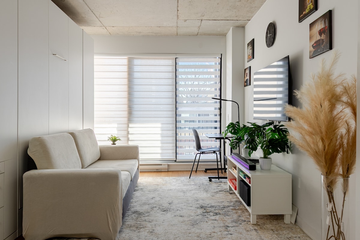 Plaza12 es un moderno y elegante apartamento de un dormitorio ubicado en el corazón de Rosemont la Petite Petite Patrie (un barrio a 1 hora a pie al norte o a 15 minutos en transporte público del centro de Montreal). Es una zona llena de restaurantes, cafeterías, tiendas y entretenimiento, por lo que es el lugar ideal para alojarse mientras exploras Montreal. La estación de metro más cercana está a 6 minutos a pie. El espacio cuenta con cocinas totalmente equipadas. Este espacio no es adecuado para niños menores de 13 años ni para mascotas.