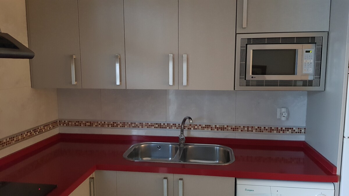 Apartamento muy luminoso con dos habitaciones, una de ellas con cama de matrimonio (150 cm) y otra con dos camas individuales (105 cm), con plaza de garaje privada, aire acondicionado, cocina y baños nuevos, terraza, vistas al mar. A 50 metros de la playa, bus a 200 metros, farmacia y tiendas de alimentación justo al lado. La playa se encuentra a 2 minutos andando, y además está al lado del parque natural de la Breña y marismas de Barbate y el Faro de Trafalgar