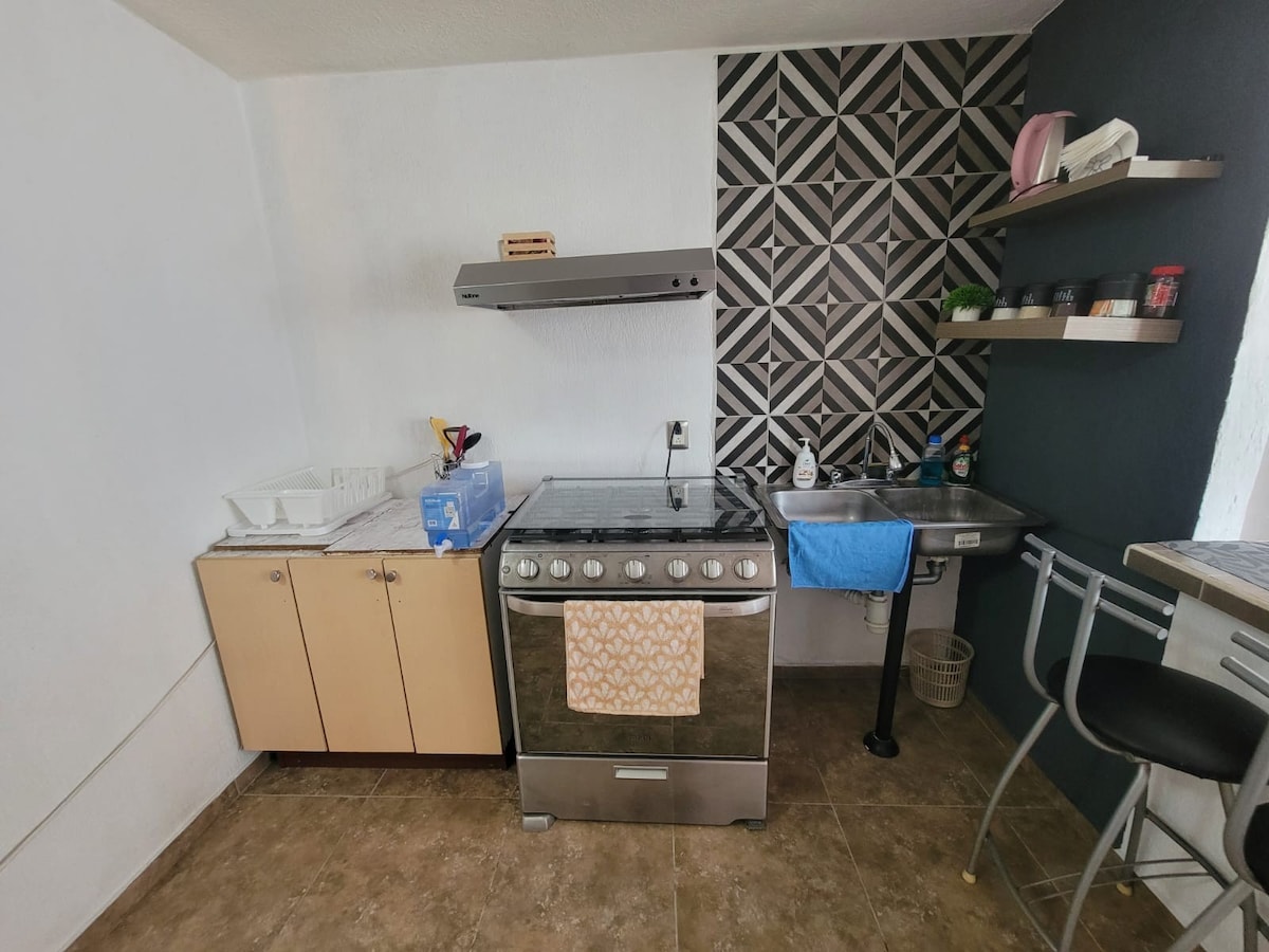 Disfruta de la sencillez de este alojamiento tranquilo y cerca del aeropuerto internacional de Guadalajara (5 minutos)en auto limpieza y sin problemas de horario para la recepción de huespedes. internet, Netflix,prime video cuenta con dos recámaras cada una con su baño y las camas son Queen size cada una y los servicios necesarios para cocinar.