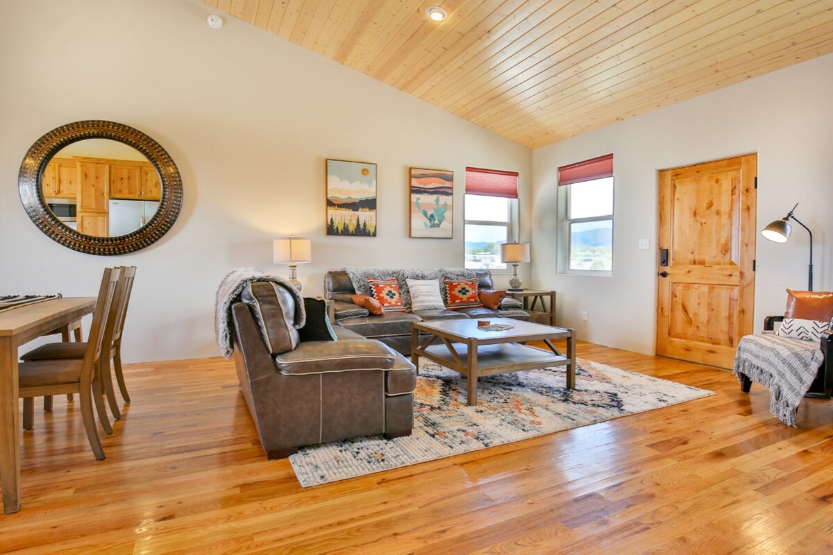 Disfruta de las increíbles vistas de 360° y de la sensación de calma en nuestra hermosa casa de dos dormitorios recién construida con espacio abierto en 3 lados de la propiedad, en un acre a solo 4 millas de Taos. Obtienes lo mejor de ambos mundos: siente que estás lejos de todo y, al mismo tiempo, a solo unos minutos de increíbles restaurantes y arte. A menos de 30 millas de Taos Ski Valley y Angel Fire Resort. ¡Tu escapada perfecta te espera!