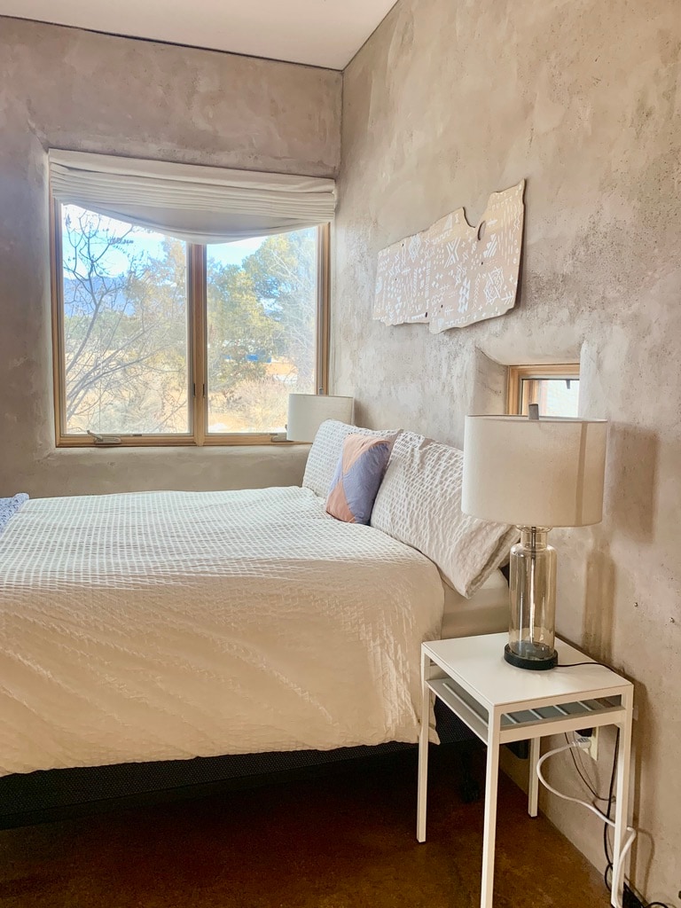 Una tranquila suite de invitados con entrada privada, baño completo, cocina pequeña y una cama tamaño queen supercómoda con la parte superior acolchada. A solo 2 millas de Taos Plaza y a 35 minutos de Taos Ski Valley. Preciosas vistas a la montaña de Taos desde tu espacio exterior privado. Disfruta de aparcamiento gratuito, wifi de fibra óptica de alta velocidad, Netflix y Amazon Prime. Café y té incluidos. Sumérgete en la serenidad de la montaña a pocos minutos del centro de la ciudad en una casa diseñada y construida por un arquitecto capacitado en Arcosanti.