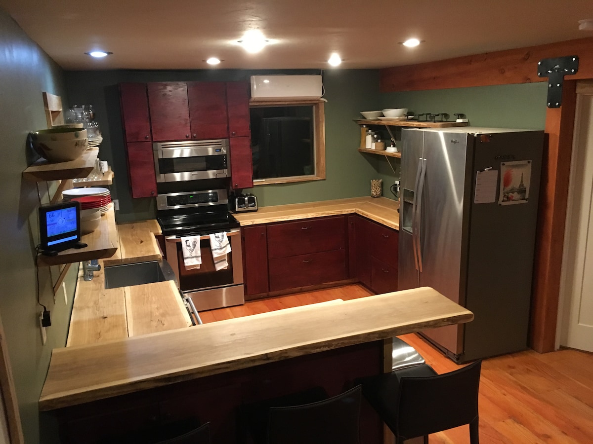 ¡La primera y única Tiny House de Sandy! Ubicada a solo una milla de la autopista 26, esta pequeña casa única se encuentra en 23 acres, ofreciendo un entorno tranquilo y privado con fácil acceso a Mt. Aventuras en el barrio. La pequeña casa tiene su propio espacio y un impresionante monte. Vistas al barrio, con nuestra casa principal visible pero sin afectar tu privacidad. Diseñado en torno a un sistema de pared de ventana móvil personalizado, se abre completamente al aire libre, llevando la montaña directamente a tu estancia para amaneceres inolvidables, atardeceres y verdadera magia del Monte Hood.