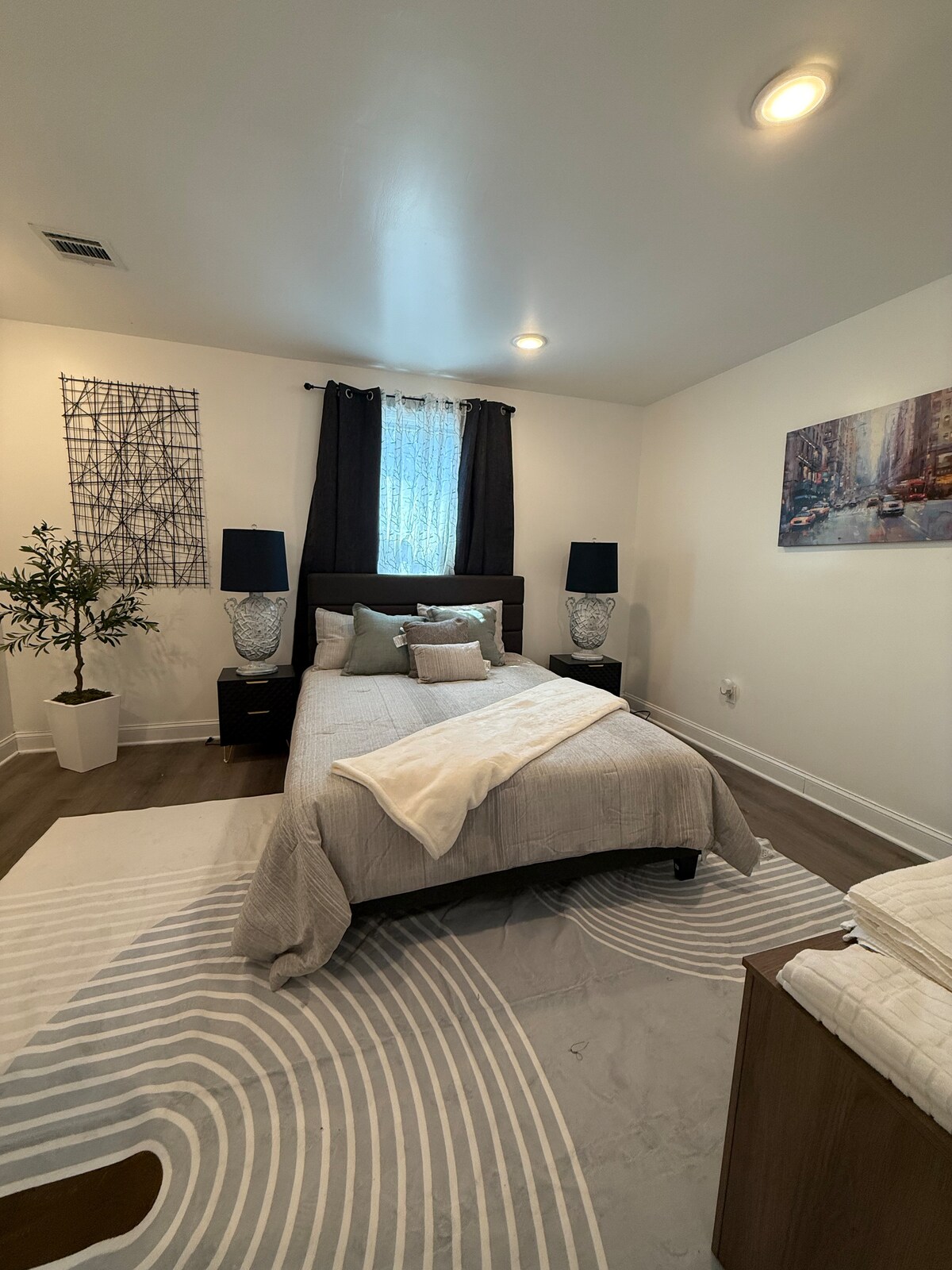 ¡Bienvenido a nuestra casa de 1 dormitorio totalmente amueblada, increíblemente limpia y espaciosa ubicada en una zona segura en Paterson! ¡Este apartamento es un ático ubicado en el tercer piso de una casa multifamiliar y es perfecto para viajeros/viajeros de negocios en solitario y/o en pareja! El viaje al aeropuerto de Newark está a 30 minutos de distancia y a 20 minutos de Nueva York. El apartamento está ubicado cerca de estaciones de autobús/tren, lavanderías, supermercados, bodegas, ¡todo a pocos pasos! ¡Una (1) plaza de estacionamiento privado incluida!