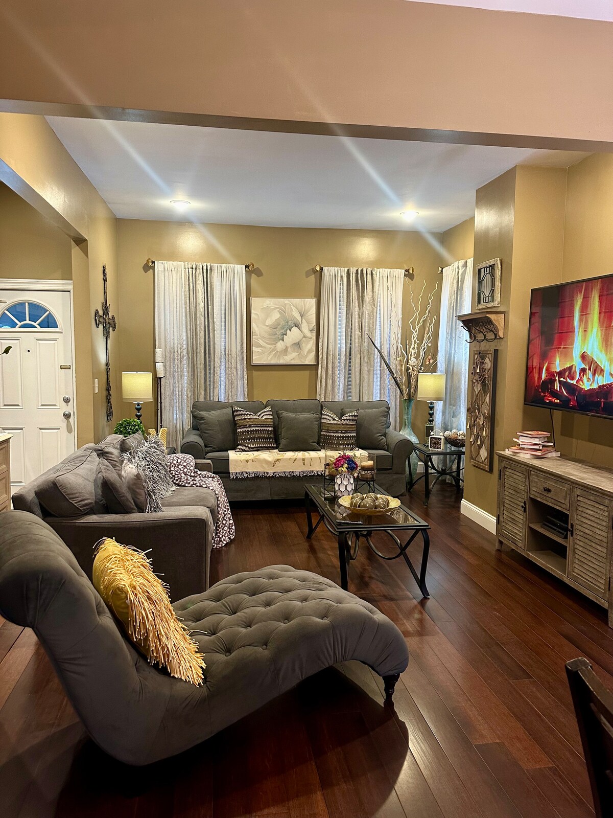 Bienvenido a la encantadora unidad de primer piso 2BR 1Bath enclavada en el tranquilo y acogedor vecindario de Haledon, Nueva Jersey. Explore el área local a pie para descubrir emocionantes tiendas, restaurantes, parques y lugares emblemáticos, o aventúrese a Nueva York durante el día. Hagas lo que hagas, regresa a este oasis relajante recientemente renovado con una rica lista de servicios que satisfará todas tus necesidades. ✔ 2 cómodas habitaciones ✔ Cocina totalmente equipada Televisores ✔ inteligentes en la chimenea✔ del interior ✔ Espacio de trabajo ✔ Wi-Fi de alta velocidad Más información a continuación.