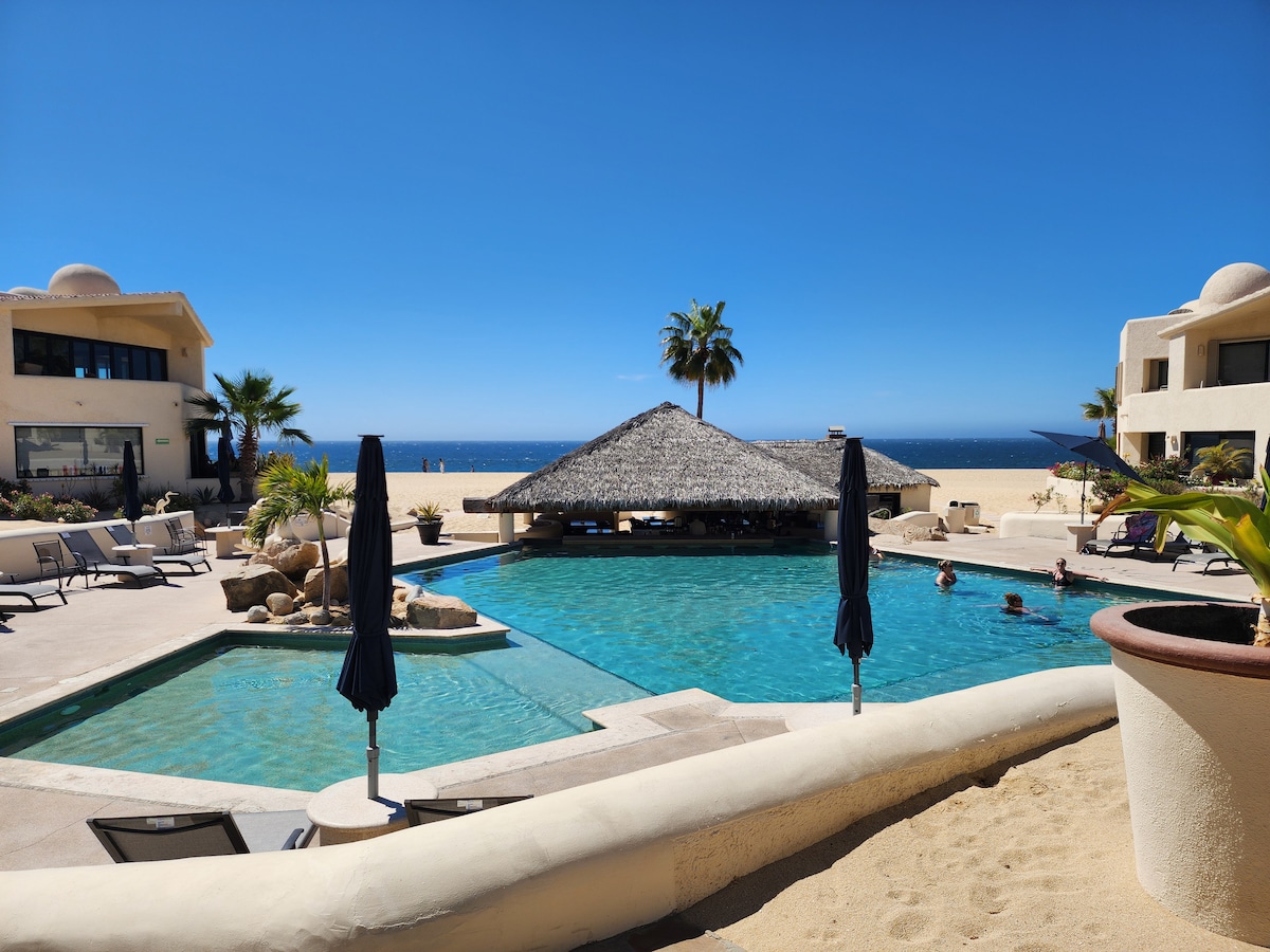 CIERRA LOS OJOS Y DEJA QUE LOS SONIDOS DEL OCÉANO TE RODEEN, OBSERVA LAS ESTRELLAS Y DEJA QUE EL AMOR CUMPLA TODOS TUS DESEOS. ¡Suite de luna de miel increíblemente elegante frente a la playa que te dejará sin aliento! Escucha las olas rompiendo en la orilla desde tu balcón privado, disfruta de tu café por la mañana o disfruta de las amplias y sin obstáculos vistas al mar en este lujoso y extragrande estudio ubicado en la playa más hermosa, privada y aislada de Cabo, junto al Hotel Waldorf Astoria.