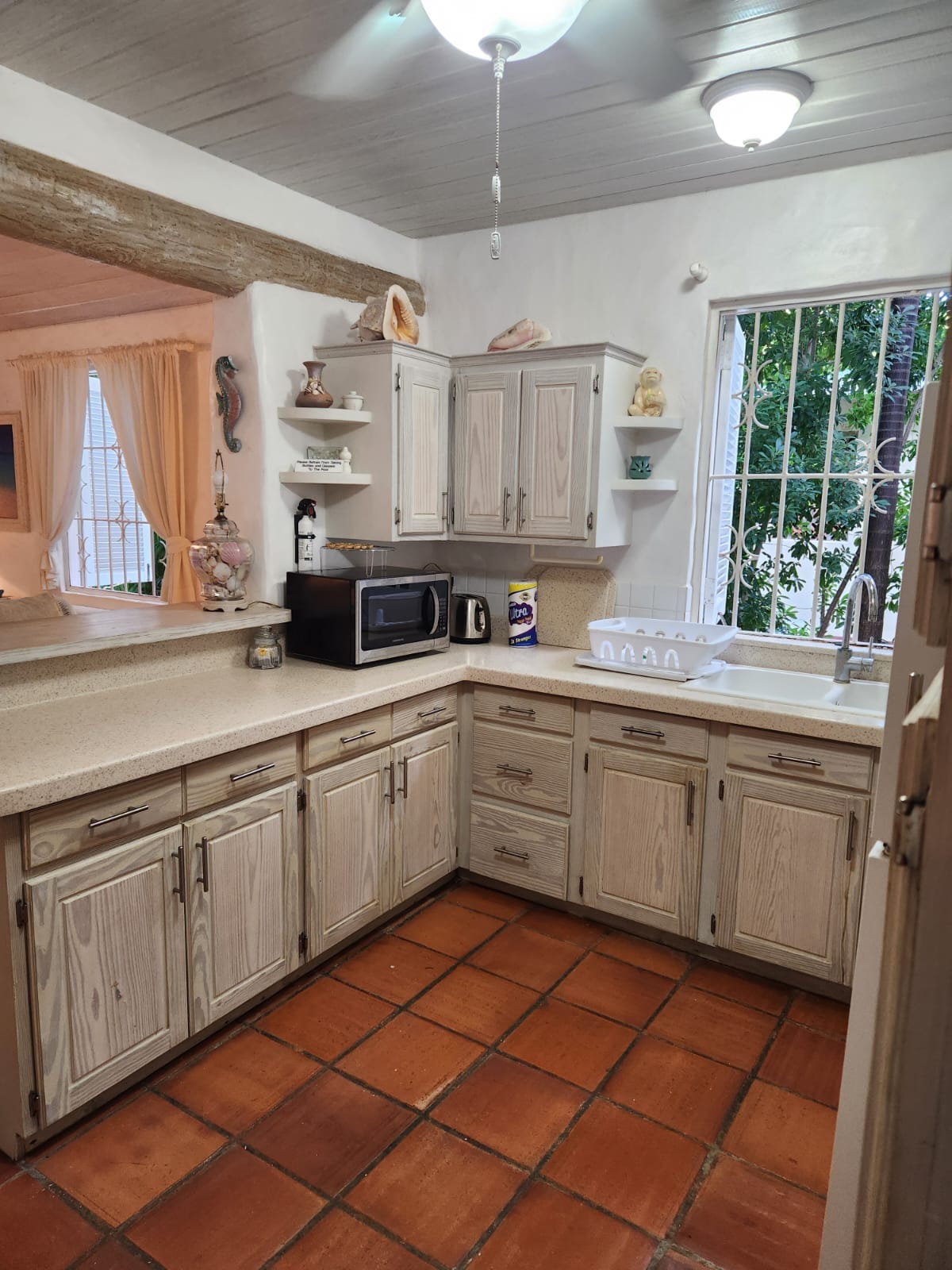 Relájate en esta villa de 3 dormitorios y 3 baños de nueva construcción, a solo 3 minutos a pie de una tranquila playa de la costa oeste. La casa TOTALMENTE AC ofrece comodidad y privacidad. Dormitorio principal: cama tamaño king, balcón privado con relajante bañera profunda BR 2: cama tamaño queen BR 3: Cama completa Todas las habitaciones cuentan con sábanas blancas suaves, edredones acolchados y persianas oscuras para una noche de sueño reparador. La sala de estar incluye una persiana de privacidad. Cocina totalmente equipada. Puerta electrónica Parrilla Sillas de playa, flotadores y enfriador (cooler). Estacionamiento para 2 autos en la puerta