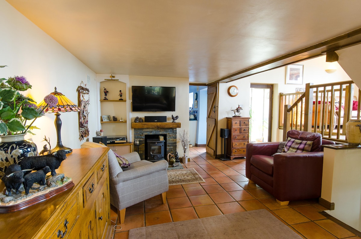 Esta casa de invitados del siglo XIX, reformada por expertos, está llena de carácter y lista para tu lujoso y relajante descanso. La sala de estar de planta abierta tiene una vista excepcional y, cuando quieras un cambio, hay una gran televisión inteligente y banda ancha de buena calidad para el entretenimiento. La cocina cuenta con placa de inducción y horno, lavavajillas y lavadora, así como todas las ollas, sartenes y utensilios que necesitas para cocinar deliciosas comidas. El baño con ducha/inodoro está convenientemente escondido en una esquina. Sube por la distintiva escalera de roble para encontrar el dormitorio de arriba, con su impresionante ventana redonda. Tiene capacidad para tres personas en una cama doble tamaño king y una individual separada, y también hay espacio para una cuna de viaje para un bebé. La casa es ideal para una pareja en una escapada romántica o para una familia con niños pequeños que buscan un espacio seguro para relajarse y jugar. CARACTERÍSTICAS PRINCIPALES - Un dormitorio arriba, con cama tamaño king doble y cama individual, espacio para cuna de viaje. - Un baño con ducha/WC: abajo. - Capacidad para tres personas y un bebé. - Zona de terraza exterior privada con vistas, uso compartido de 1,5 acres de prado y jardines seguros. - Se admiten perros, dos como máximo, pequeño cargo adicional. - Se admiten niños pequeños (pero es posible que tengas que traer una puerta de seguridad para las escaleras). - Smart TV (Netflix, iPlayer, Freesat, etc.). - Banda ancha de buena calidad/wifi (gratis). - Placa de inducción, horno, microondas, nevera (congelador disponible si es necesario), lavavajillas. - Mesa de comedor para cuatro, dos sofás de cuero. - Lavadora (y uso de secadora si es necesario). - Calefacción por suelo radiante (alimentada por bombas de calor de fuente de aire ecológicas). - Estufa de leña, primera cesta de leña gratis. La casa de invitados se puede reservar por semana (día de inicio el viernes) y para escapadas cortas de fin de semana y a mitad de semana.