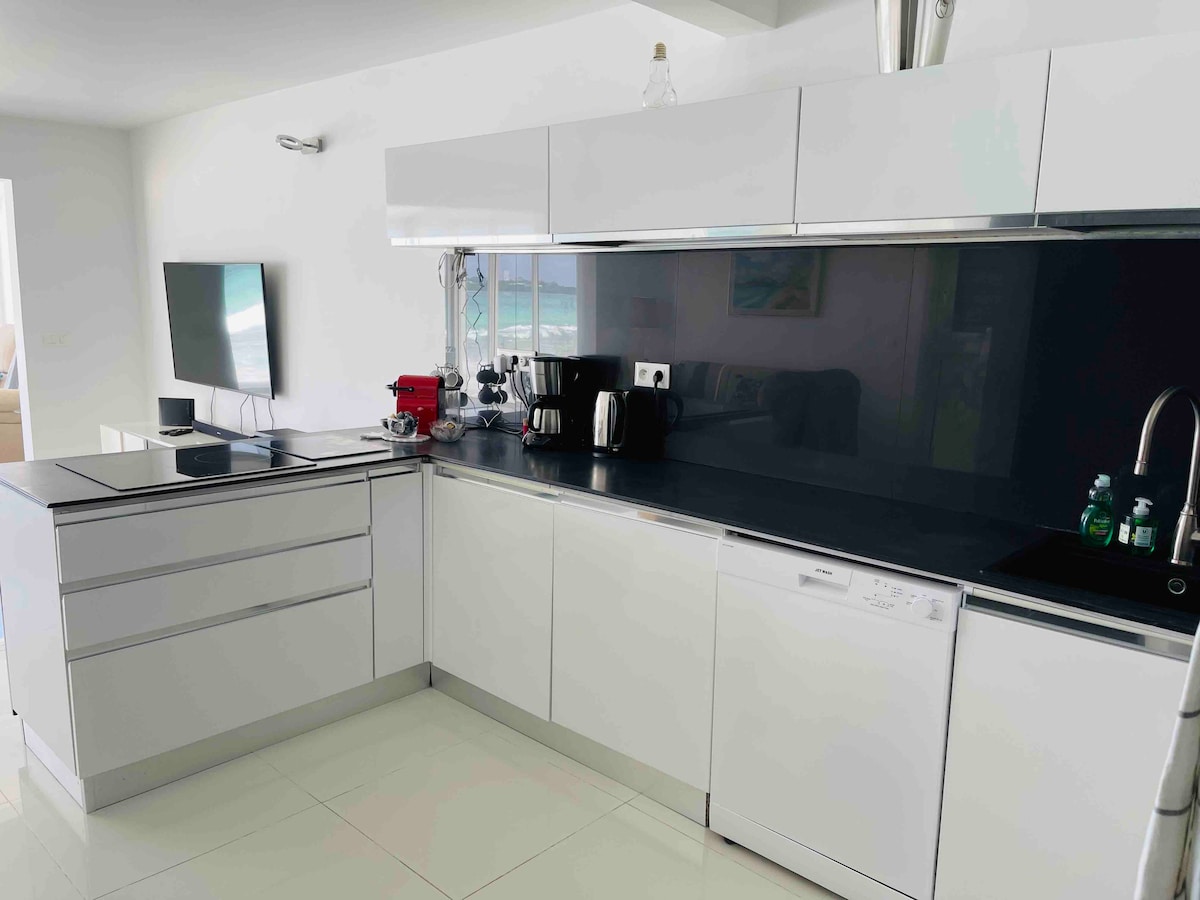 ¡Ubicación , ubicación ubicación ! Usted no puede conseguir más cerca del océano que en este apartamento del lado del acantilado. El sonido de las olas rompiendo debajo y las increíbles vistas al mar desde cada habitación. El amanecer es mágico todos los días y, por la noche, las luces brillantes de la bahía de Simpson. Este apartamento junto al acantilado cuenta con todo lo que necesitas para una estancia de ensueño lejos de las multitudes. A solo unos pasos de 4 playas: la bahía de Simpson, la bahía de Mullet, la bahía de Burgeux y a 5 minutos a pie de la famosa playa de Maho con sus famosos aterrizajes de aviones