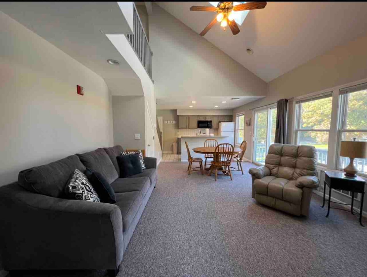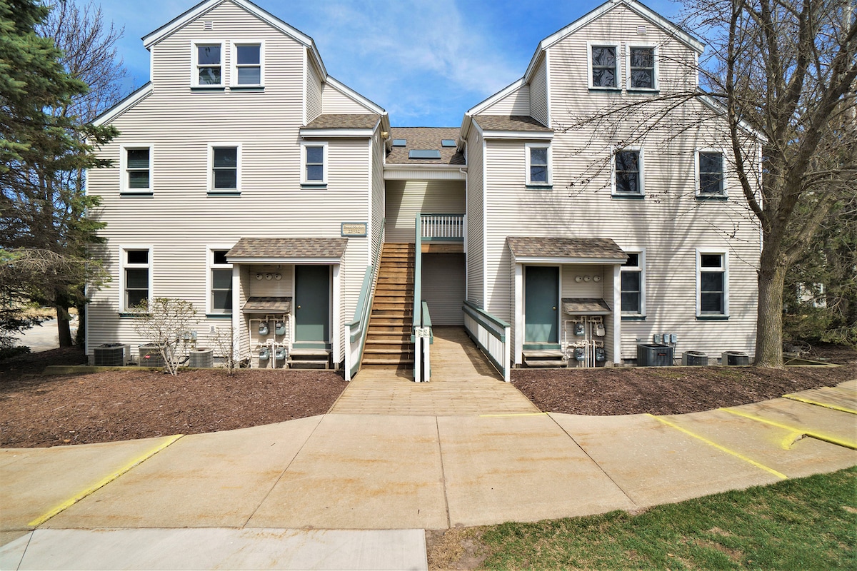¡Te damos la bienvenida a nuestra relajante casa con vista al agua! Estás a pocos pasos del lago Michigan y de las rutas de senderismo cercanas. Relájate en el interior junto a la chimenea mientras haces un rompecabezas con vistas al agua desde todas las ventanas. Nuestra comunidad incluye acceso a una piscina cubierta y jacuzzi, abierta de 6a 10:30p. m. todos los días del año y una piscina al aire libre en verano. Dos dormitorios tamaño queen + espacio adicional en el rellano con cama nido doble para que muchos puedan dormir. Cocina y lavandería totalmente equipadas.
