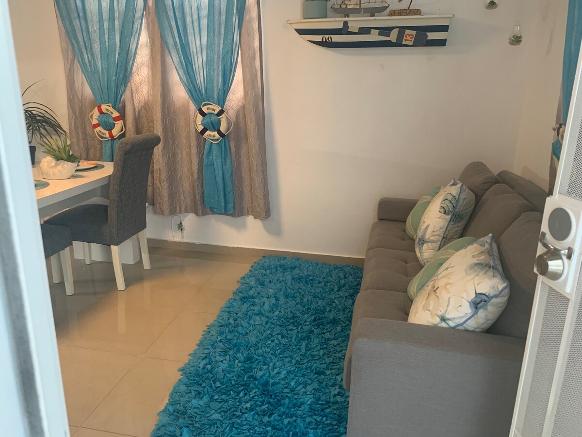 Precioso Apartamento totalmente independiente, (son 5 en total) TENEMOS PANELES SOLARES , con entrada independiente , cada 1 con dormitorio, baño, cocina, estufa , microondas, lavadora, secadora, aire acondicionado en la habitación , wifi, parking decorado con murales, patio con proyector y bbq. Tv ,roku y Netflix . ¡Cerca de todo¡ Supermercados ,Frente al Hospital Hima San Pablo, Farmacias, a minutos de la playa Seven Seas.