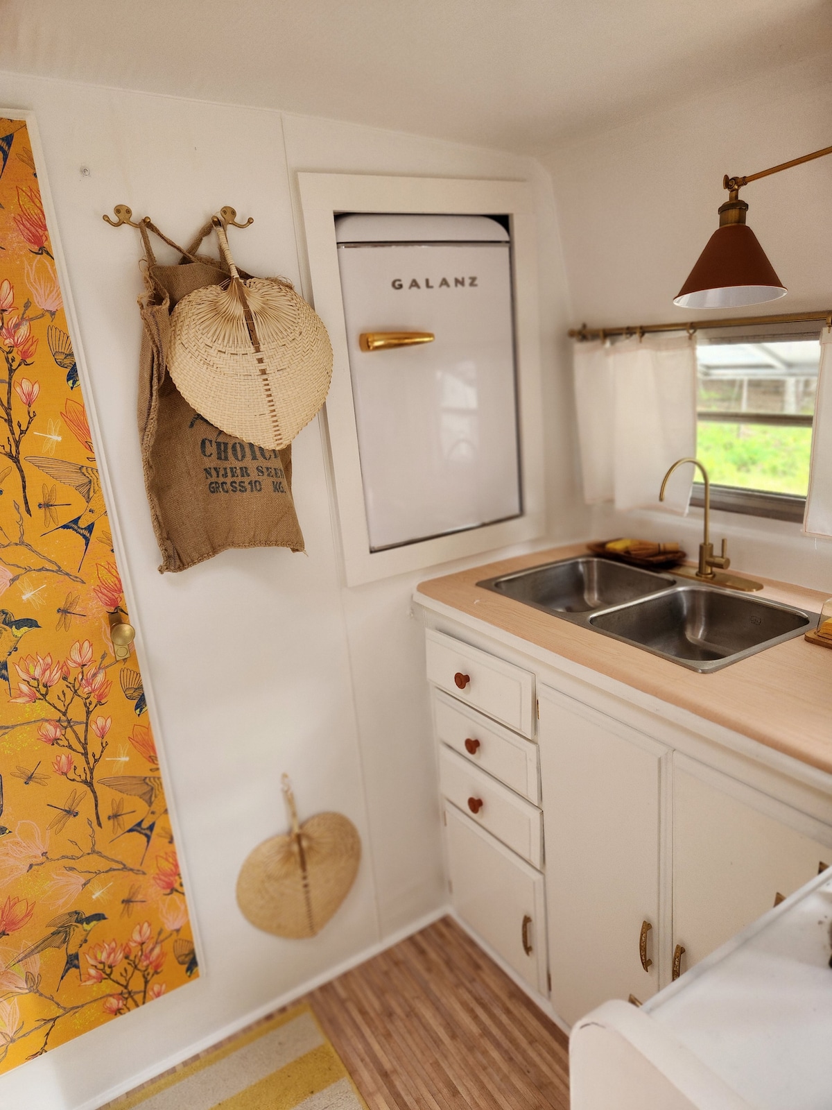 Roxanne tiene un ambiente moderno de mediados de siglo y su estilo retro chic, te transportará instantáneamente de vuelta a los años sesenta. ¡Ha sido cuidadosamente restaurada y cuidadosamente seleccionada para garantizar que tu estancia de glamping con nosotros sea perfecta! Roxanne duerme cómodamente 2 personas con una cama tamaño queen completa en la parte trasera y cuenta con una cocina pequeña luminosa y hermosa equipada con una nevera para mantener tus bebidas frías, un fregadero con agua corriente fría y caliente, un microondas y un baño completo con una pequeña ducha encantadora.