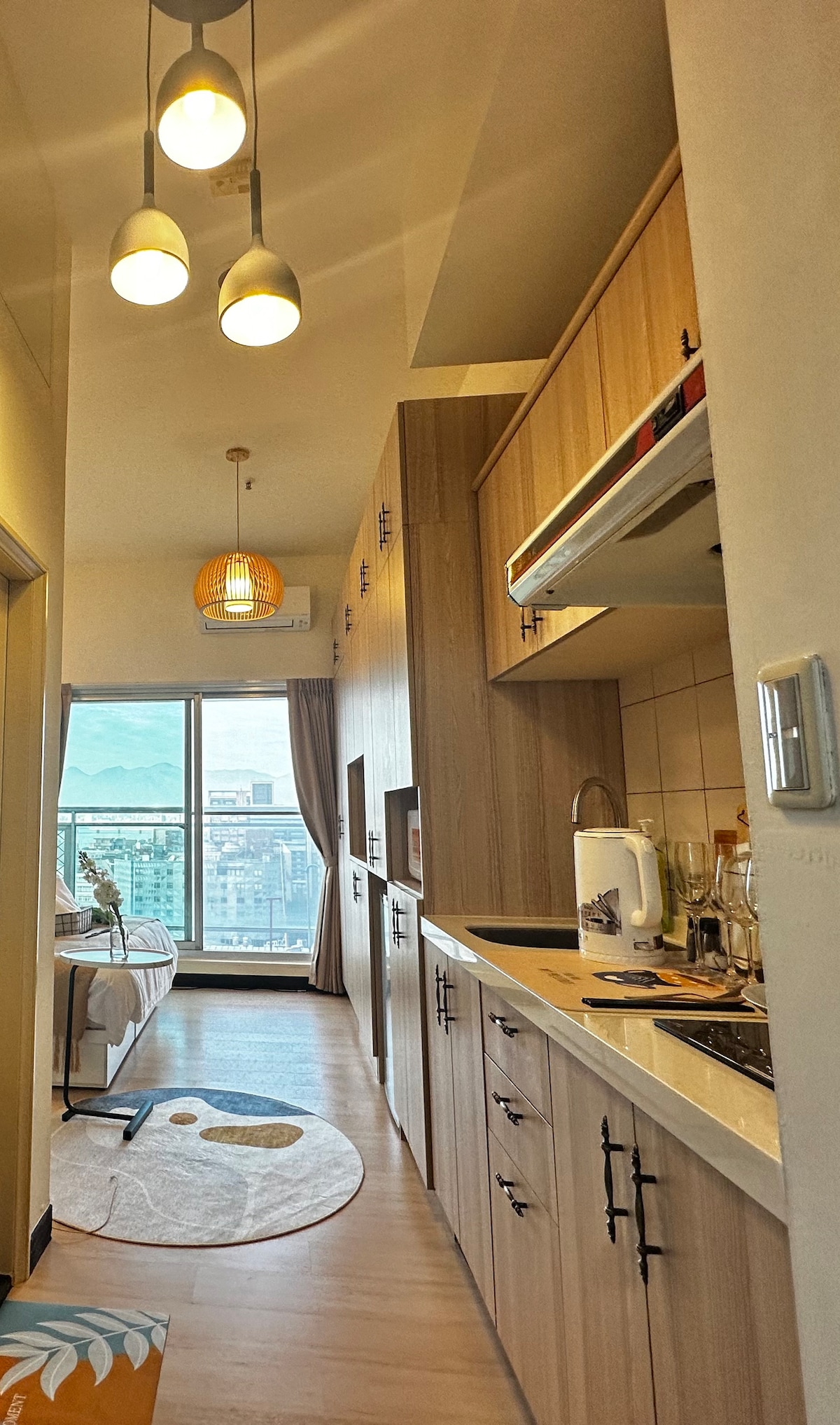 室內的灰白主色,配搭北美木紋銅色傢俱及家飾, 用心為您的居住空間提供沈靜優雅的感覺。日韓系電器的選用,不論是無線充電藍牙喇叭 ,大螢幕伸縮高清電視 ,都能滿足您對影音效果的要求。房源位於高樓內縮樓層,阻絕不必要的噪音並滿足您對景觀 ,安靜及隱私的要求。大樓並配有全天候警衛,住戶專屬電梯 ,公用大露台 ,以及地下收費停車場, 位處西門町核心路段,無論搭乘捷運或自駕都非常方便。El diseño interior basado en el tono de la tierra ofrece una atmósfera cálida, tranquila, curativa y encantadora. Instalaciones de la habitación, incluyendo cama doble, baño privado con ducha, aire acondicionado, televisor inteligente 4K con películas/Netflix, Internet WIFI, iluminación de la cala y reproductor de música con conexión inalámbrica y puertos de cargador USB.