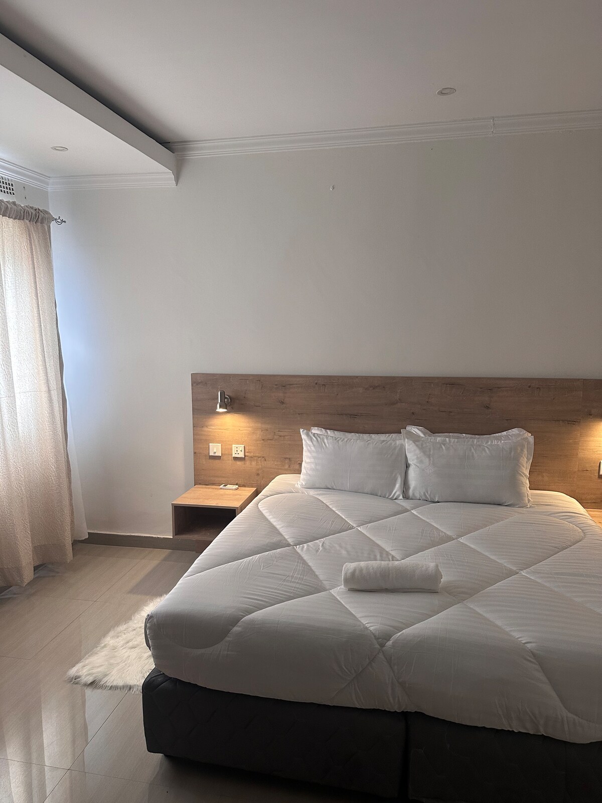 Este lujoso apartamento de 1 dormitorio está situado en PHI en Great East Road, junto al centro comercial 'Love of Home' y a 5 minutos a pie del Hospital Levy y la tienda de comestibles Choppies. También a unos 12 minutos en auto del centro comercial East Park. El apartamento está equipado con respaldo de energía y una estufa de gas para combatir los cortes de energía nacionales. También está equipado con aire acondicionado, wifi, TV inteligente con acceso a Netflix. Tanto si estás en Lusaka por negocios como por placer, nuestro apartamento ofrece comodidad, conveniencia y una ubicación privilegiada.