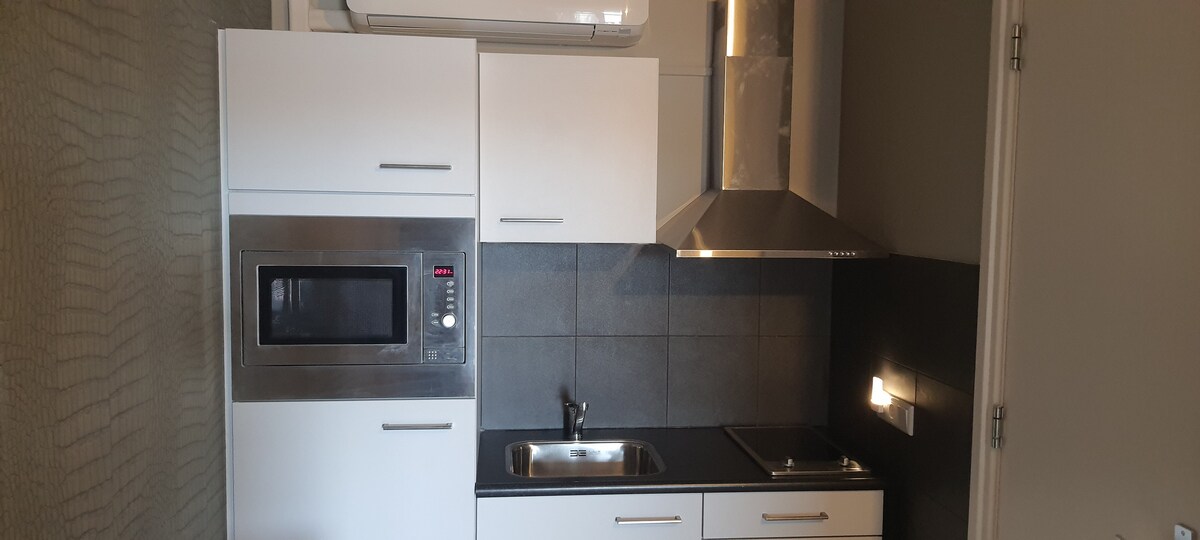 Pequeño estudio (30 m²) a estrenar (2025) en la tranquila zona de Maren-Kessel, cerca del río Maas. Totalmente amueblado con cocina privada, baño, lavadora/secadora, calefacción por suelo radiante, wifi rápido, 2 televisores inteligentes y terraza privada. ¡Naturaleza y ciudades cerca!