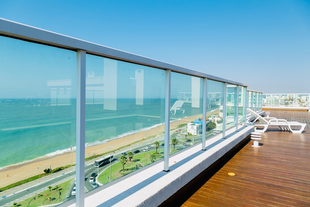 Decoración moderna: minicocina, concepto abierto, techo de yeso, baño de lujo con agua caliente; - Vista al mar; - Comodidad: aire acondicionado, balcón, cortinas opacas, minibar, TV inteligente y con canales cerrados, cama tamaño king, toallas, sábanas, almohadas, jabón y papel higiénico. - Espacio de trabajo: silla giratoria con ruedas, escritorio, lámpara e internet; - Condominio: conserje las 24 horas, piscina, sauna y gimnasio.