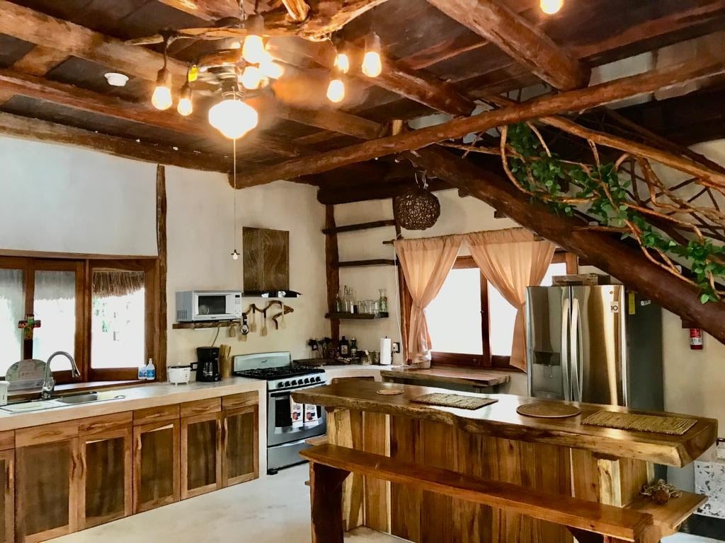 Junto al internacionalmente aclamado retiro de bienestar, Holistika, este espacio rodeado de naturaleza es raro e inolvidable. La casa del árbol Heart Fire Treehouse ofrece lo mejor de dos mundos: los huéspedes pueden bañarse en la naturaleza sin dejar de tener acceso a las atracciones de la ciudad (cafés de coworking, tiendas de comestibles y restaurantes locales e internacionales, la playa y los cenotes, tiendas) a poca distancia a pie, en bicicleta o en coche. Playa = 15-20 minutos en coche *Ten en cuenta que pueden haber obras cerca durante el horario laboral de lunes a viernes.