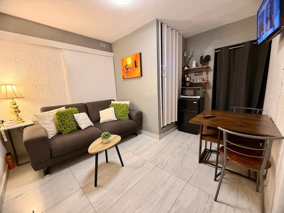 Departamento con diseño innovador en el barrio de Tampiquito, ideal para viajes de trabajo, cursos, visitas a universidades o simplemente escapar de la rutina. Es un espacio acogedor con acceso automatizado para recibirte a cualquier hora, estamos disponibles para ayudarte y recomendarte los mejores restaurantes en el área. Podemos almacenar tu equipaje antes de tu llegada o después de tu salida. *Déjanos saber si requieres factura al inicio de tu reserva No cuenta con estacionamiento.