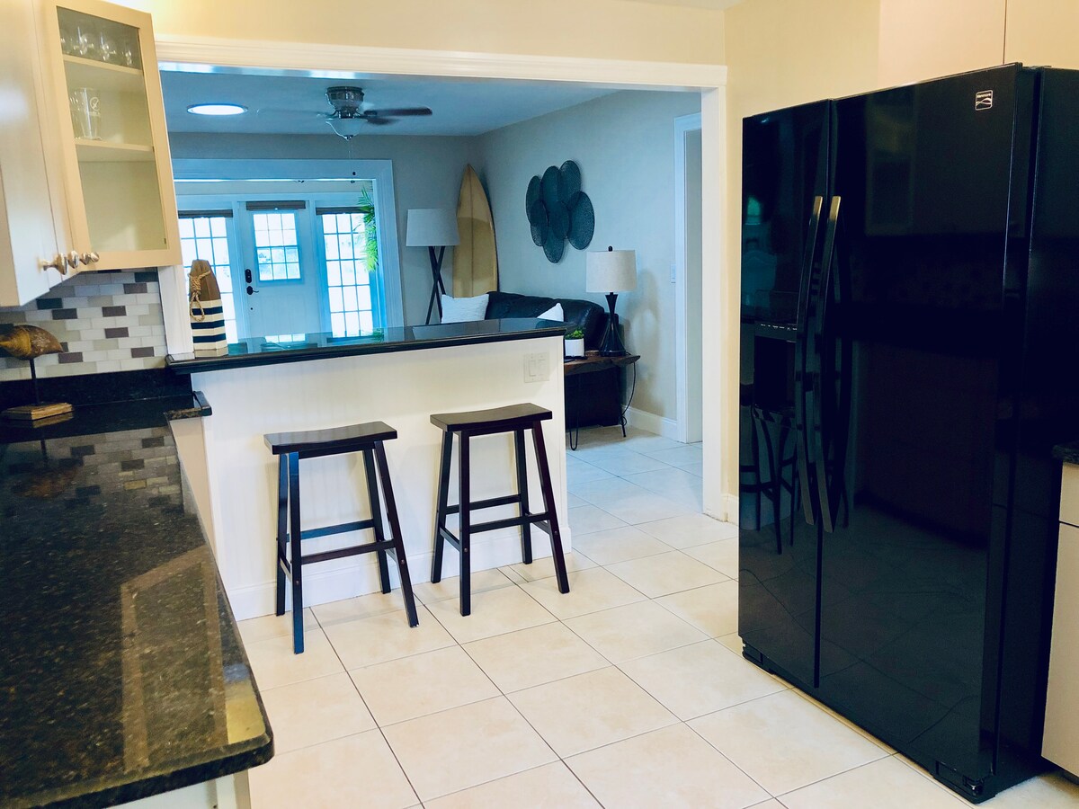 ¡PLAYA PRIVADA ABIERTA! ¡DISFRUTA de tu propio bungalow! (NO es un condominio, sin ascensores, pasillos ni vestíbulos abarrotados) Barrett Beach Bungalows conserva los tradicionales encantos de la playa de Florida con estilo en 4 encantadores bungalows. ¿Por qué pasar tus vacaciones en Florida en un hotel lleno de gente? DOLPHIN BUNGALOW está a SOLO 50 pasos de la playa, se encuentra detrás del bungalow frente a la playa, pero no frente a la playa. TODOS los huéspedes disfrutan de piscina climatizada frente a la playa, tumbonas, sombrillas, chimenea, voleibol y juguetes. ¡Totalmente equipado, superlimpio!