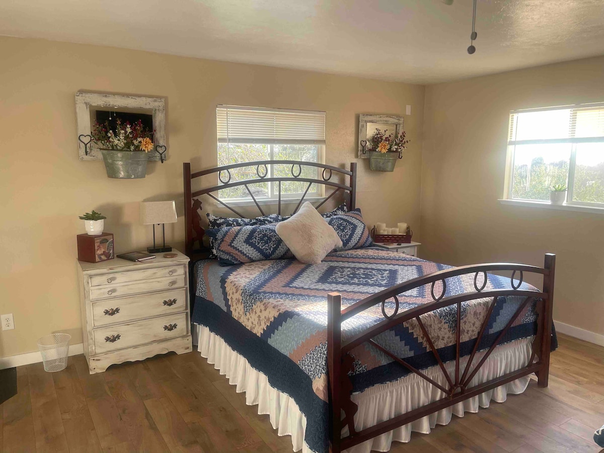 Acogedora casa de huéspedes privada en una pequeña ciudad de estilo occidental. Tendrás cocina propia, hamaca, 1 cama tamaño queen, 1 cama individual (xs), wifi, TV/Netflix, aire acondicionado, entrada independiente propia y cuna opcional para un cuarto huésped. La casa está bien equipada, limpia, recién construida y se encuentra en una zona tranquila para una gran noche de descanso. Visita bodegas, pueblos históricos circundantes, el lago Shaver y Yosemite. Ubicado en el centro de California, es un lugar ideal para tus viajes continuos hacia parques nacionales, playas y ciudades más grandes.