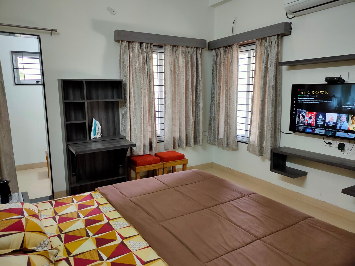 Situada en la elegante y codiciada zona residencial Vijaynagar de Indore, esta parte de 3 BHK en la planta baja cuenta con todas las comodidades e instalaciones que un viajero moderno espera. Dormitorios con TV inteligente, aire acondicionado, colchones de espuma viscoelástica, armario, baño adjunto con calentador de agua y todo. Cocina modular totalmente equipada con nevera, chimenea eléctrica, placa de gas e inducción, purificador de agua, utensilios para cocinar, etc. Comedor y salón/salón/salón. Todo en un hogar lejos de casa para un grupo de seis.