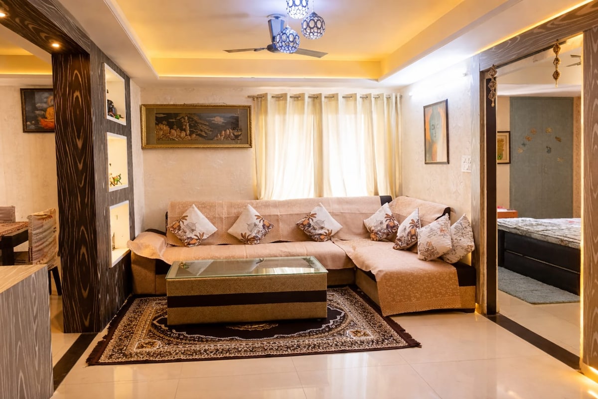 Paz completa LakeTouch, a 1 km del aeropuerto, pista de Super Waking alrededor del lago, templo en el lago, bosque cercano, sonidos de pavo real por la mañana, tablero de Carom para niños. Jardín en el lago con juegos. Pantaloon, Reliance Trends, Sketchers, RedisonBlu, estación de metro, a solo 1,5 km MIHAN una zona industrial, AIIMS, IIM A SOLO 5 KM de instituciones, centros comerciales, cine, cafeterías, supermercados y restaurantes cercanos. ➜ No se permiten fiestas ni reuniones. ➜ No se permiten visitantes adicionales de los huéspedes