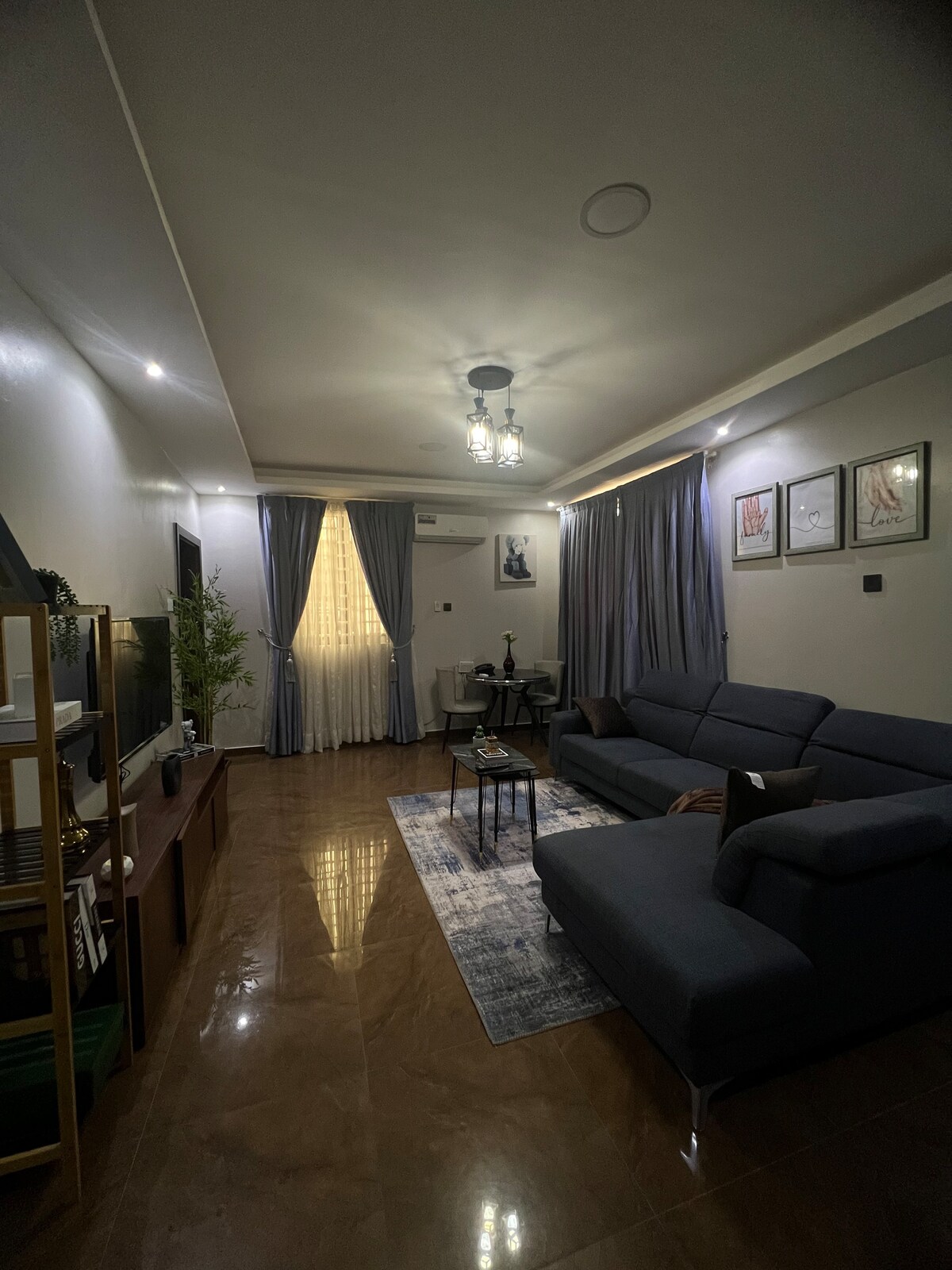 Comodidad moderna en un departamento elegante y bellamente iluminado con un acabado contemporáneo limpio y un cálido resplandor nocturno que se siente instantáneamente exclusivo y acogedor. Situado en un barrio tranquilo a 19 minutos del aeropuerto, a 17 minutos del centro comercial Accra, a 10 minutos del centro comercial Atlantic y a unos 30 minutos de las montañas Aburi, ofrece fácil acceso a tiendas, centros de negocios y centros de ocio. Nunca estás lejos de todo lo que necesitas, pero aún así lo suficientemente escondido como para relajarte y descansar. Un refugio elegante al que te encantará volver a casa.