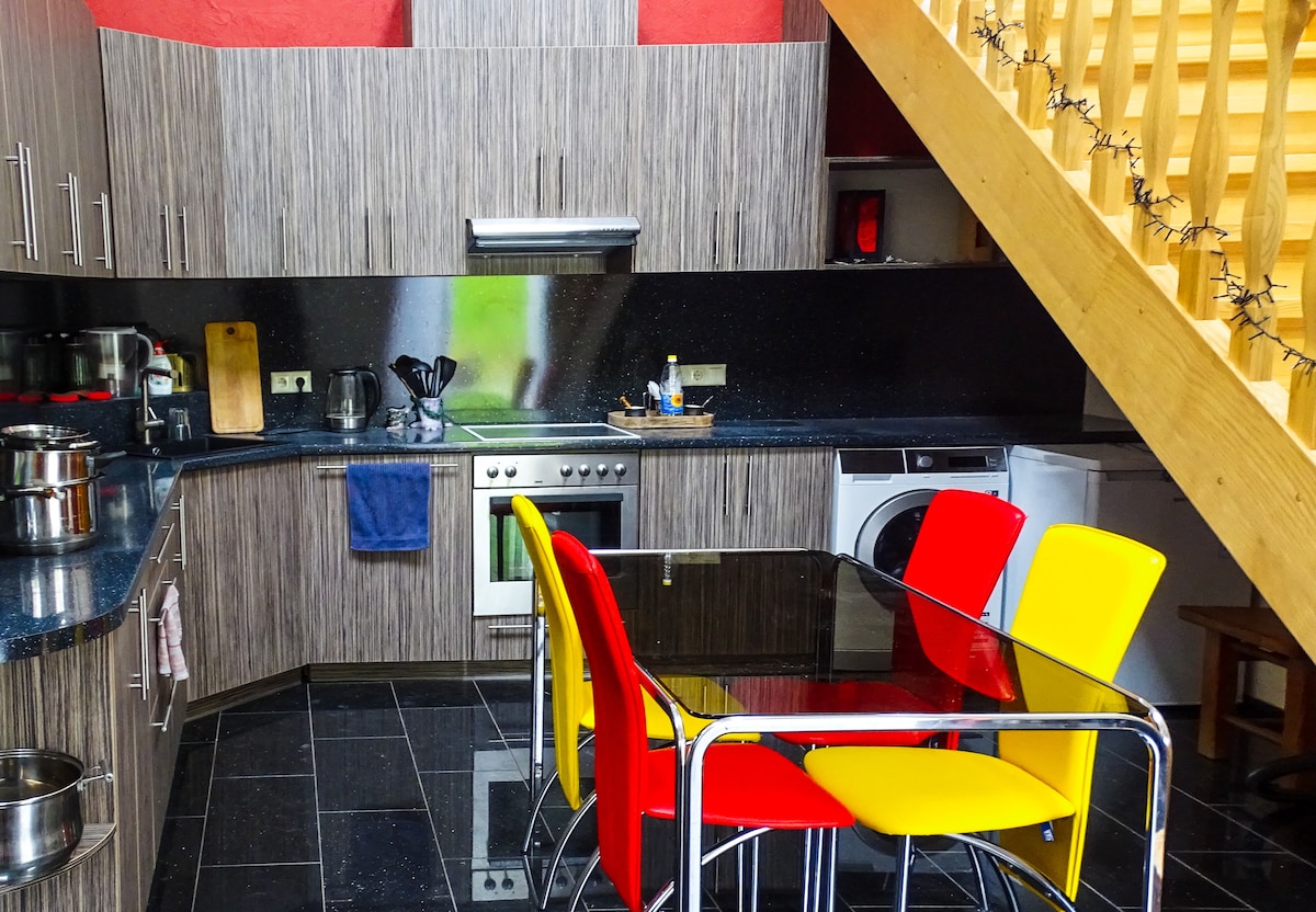 ¡Te damos la bienvenida a un espacioso y elegante apartamento de 5 dormitorios (125 m²) ! Es perfecto para grupos grandes ⭐ Entrada ★sin llave con cerradura digital: no es necesario llevar las llaves ★2,5 baños: dos duchas y tres inodoros para tu comodidad Sala ★de equipaje: conveniente para el check-in anticipado/salida después de la hora establecida Entrada ★ privada: total independencia de los vecinos ★ 2 .ª planta de un edificio histórico de madera Calle ★ tranquila con tráfico de un solo sentido ★ A 15 minutos a pie del casco antiguo ★ Rodeado de cafeterías y restaurantes acogedores