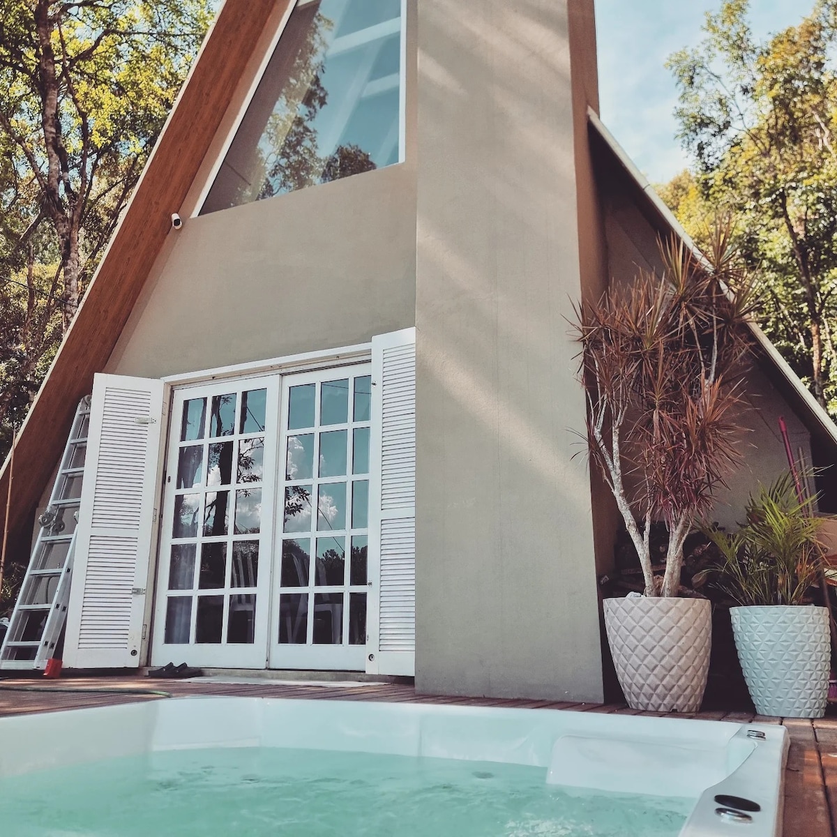 La cabaña Feng Shui es un refugio romántico en medio de la naturaleza, ideal para parejas que buscan comodidad y armonía. Con una encantadora chimenea, bañera de hidromasaje al aire libre, balcón con vistas al lago y al atardecer, columpio tailandés y chimenea al aire libre, cada detalle fue diseñado para crear momentos especiales. Perfecto para una luna de miel, una escapada para dos o días de descanso rodeado de paz y romance.