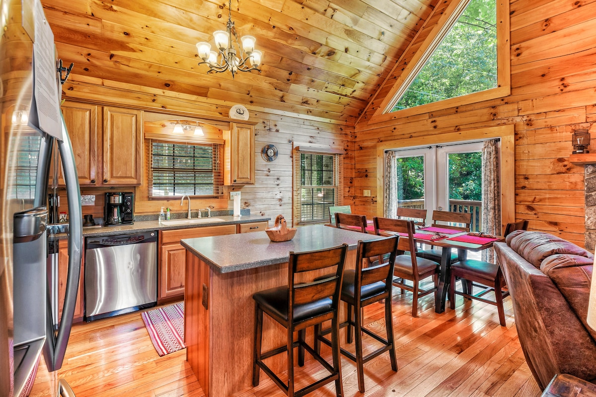 ¡Escápate a Maggie Pines Hideaway! Ubicado en los árboles con vistas al Maggie Valley Club, disfruta de un chalet de mediados de siglo totalmente renovado que ofrece vistas panorámicas a la montaña desde todas las habitaciones de la casa, incluido el jacuzzi. Ya sea que estés haciendo senderismo, jugando al golf o tomando la motocicleta para dar una vuelta, tienes todo lo que necesitas en este hermoso refugio junto a la montaña. ¡Reserva ahora para unas vacaciones inolvidables!