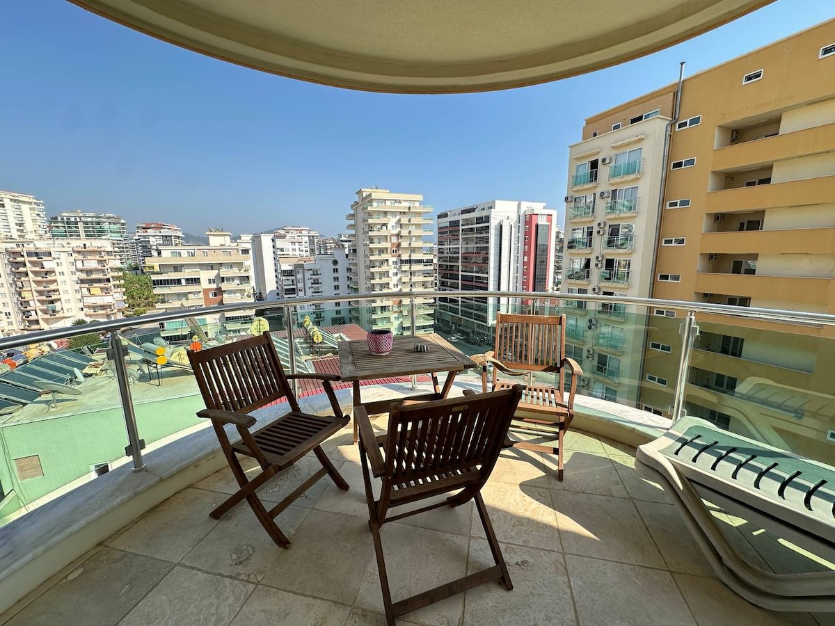 "Con licencia oficial para alquiler a corto plazo" Te damos la bienvenida a Beach Haven, tu relajante lugar de escapada de vacaciones. Este lujoso apartamento con vistas al mar vive directamente en la costa de Alanya - Piscina al aire libre ✔ - Piscina cubierta climatizada. ✔ - Zona de niños ✔ - Jardín ✔ - Hammam y Sauna turcos ✔ - Gimnasio ✔ - Acceso privado a la playa por túnel con tumbonas y sombrillas ✔ - TV, WIFI ✔ - Seguridad las 24 horas. ✔ - Cero metros a la playa. ✔ -T con vistas al mar y las montañas. ✔