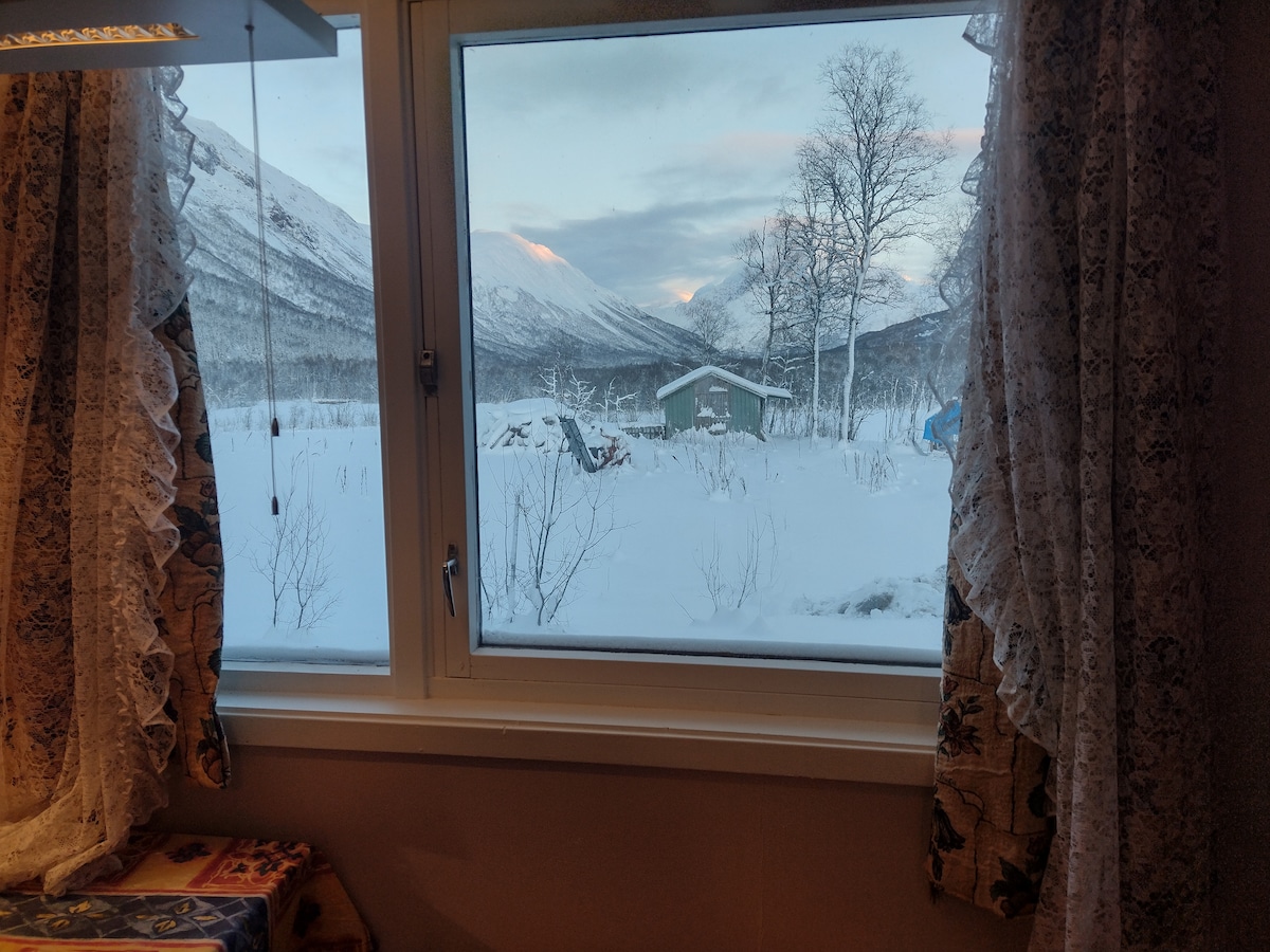 Denne sjarmerende 50 kvm leiligheten er det perfekte stedet for å koble av og nyte vakker natur i Nord-Norge. - Fullt utstyrt kjøkken for matlaging - Gratis WiFi og TV for underholdning - Terrasse med fantastisk utsikt over Målselv - Ideelle forhold for å se nordlys på klare vinterkvelder - Vaskemaskin tilgjengelig for lengre opphold - Dagligvarebutikk 1km unna. - Bare 10 minutter unna finner du Målselv Fjellandsby. - Gratis parkering! Vi gleder oss til å ønske deg velkommen!